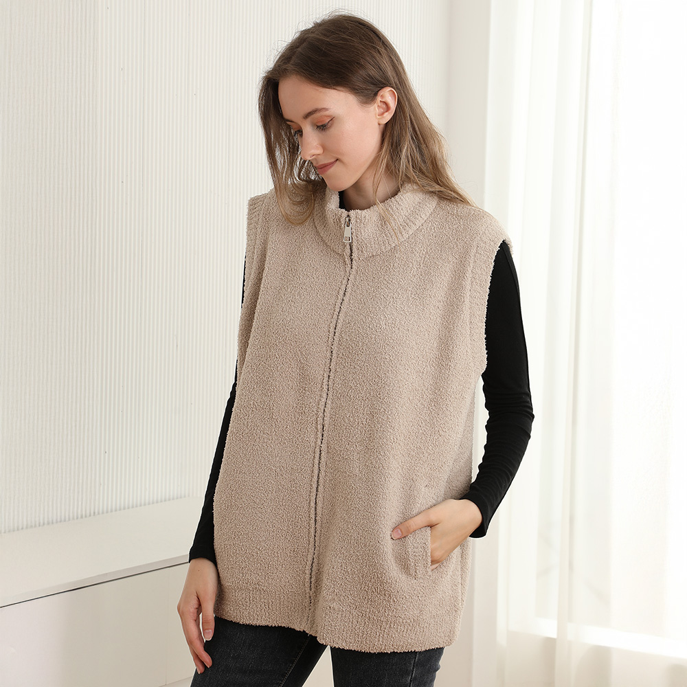 Cozy Solid Oversized Zipper Front Pocket Sweater Vest