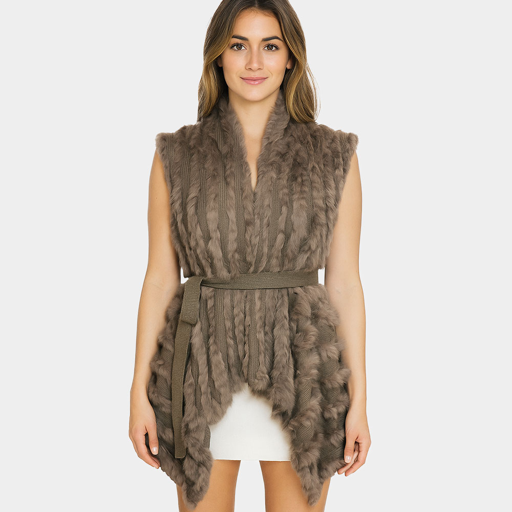 Luxe Faux Fur Elegant Belted Sleeveless Vest