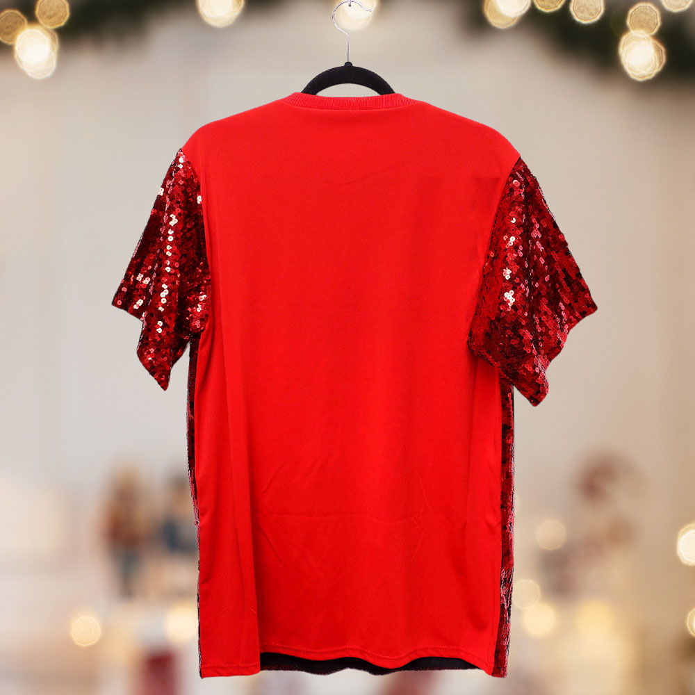 Details • Size : Plus Size • Bust Size : 48" - 50" L, Length : 31" L • Material : 100% Polyester • Sparkle with seasonal charm in this plus size sequin Christmas tree dress, featuring playful holiday motifs and a shimmering finish. Perfect for Christmas parties, family gatherings, or festive photos, this cheerful dress brings joy and holiday spirit to every celebration.