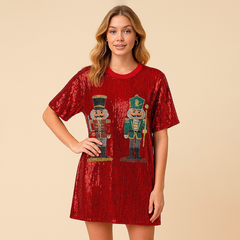 • Make a sparkling statement this season with this sequin nutcracker dress featuring a whimsical holiday design. Perfect for Christmas parties, festive gatherings, or holiday photos, this cheerful dress brings classic charm and radiant shine to your celebration look.