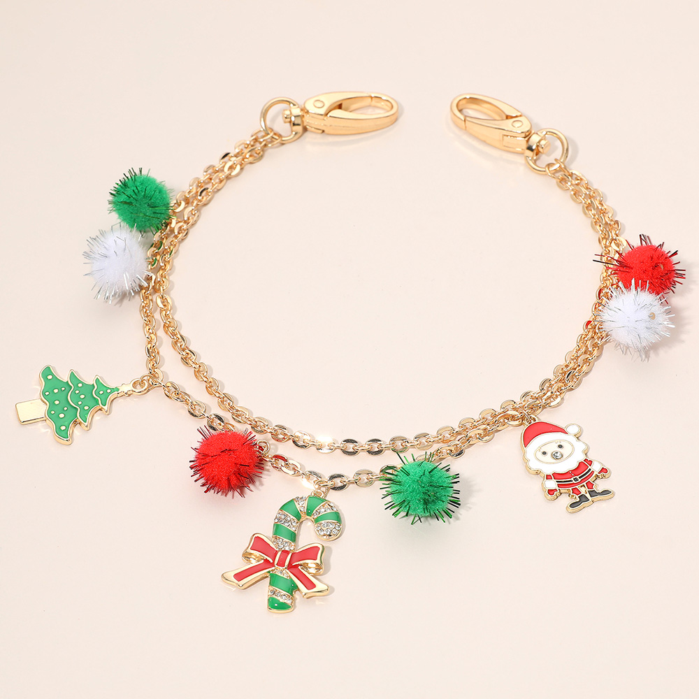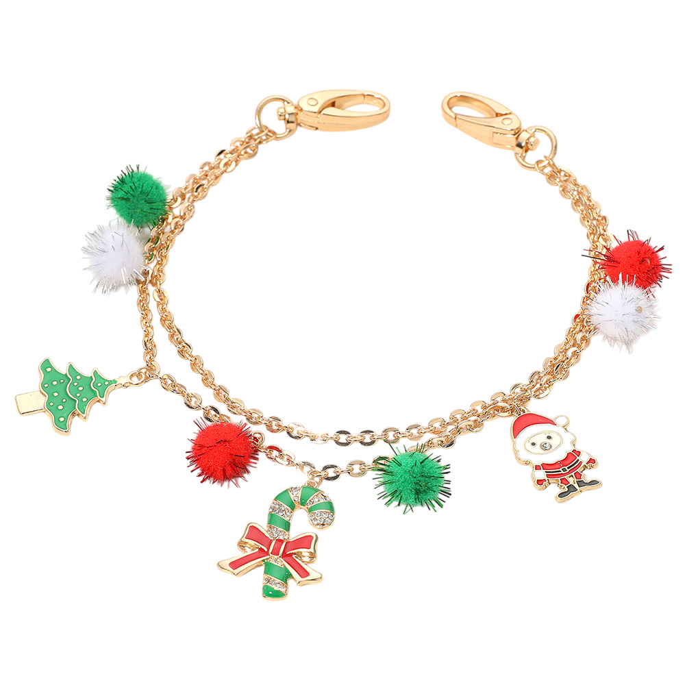 Details • Size : 14.5" L • Decor Size : 2.1" L • Add a touch of holiday cheer to your tote, purse, or backpack with this festive Christmas bag charm featuring playful pendants like a tree, candy cane, and Santa, accented with fluffy pom-poms. A fun seasonal accessory that makes your bag stand out all season long. • Lead and Nickel Compliant