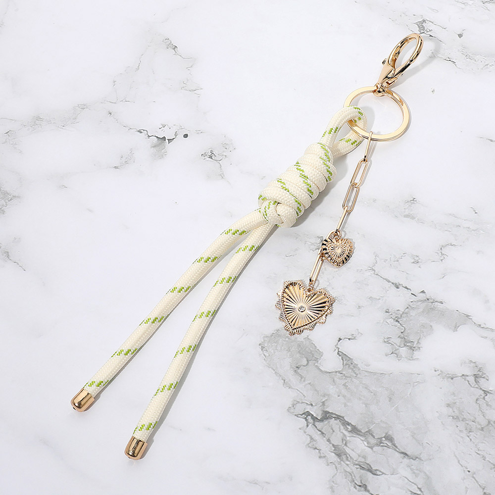 Details • Size : 9.5" L • Modern rope-style keychain with decorative knotted cords and dangling charm accents, finished with a secure clip for easy attachment to keys, handbags, or backpacks. Adds playful movement and stylish detail to daily essentials, perfect for personalizing accessories with a unique touch. • Lead and Nickel Compliant