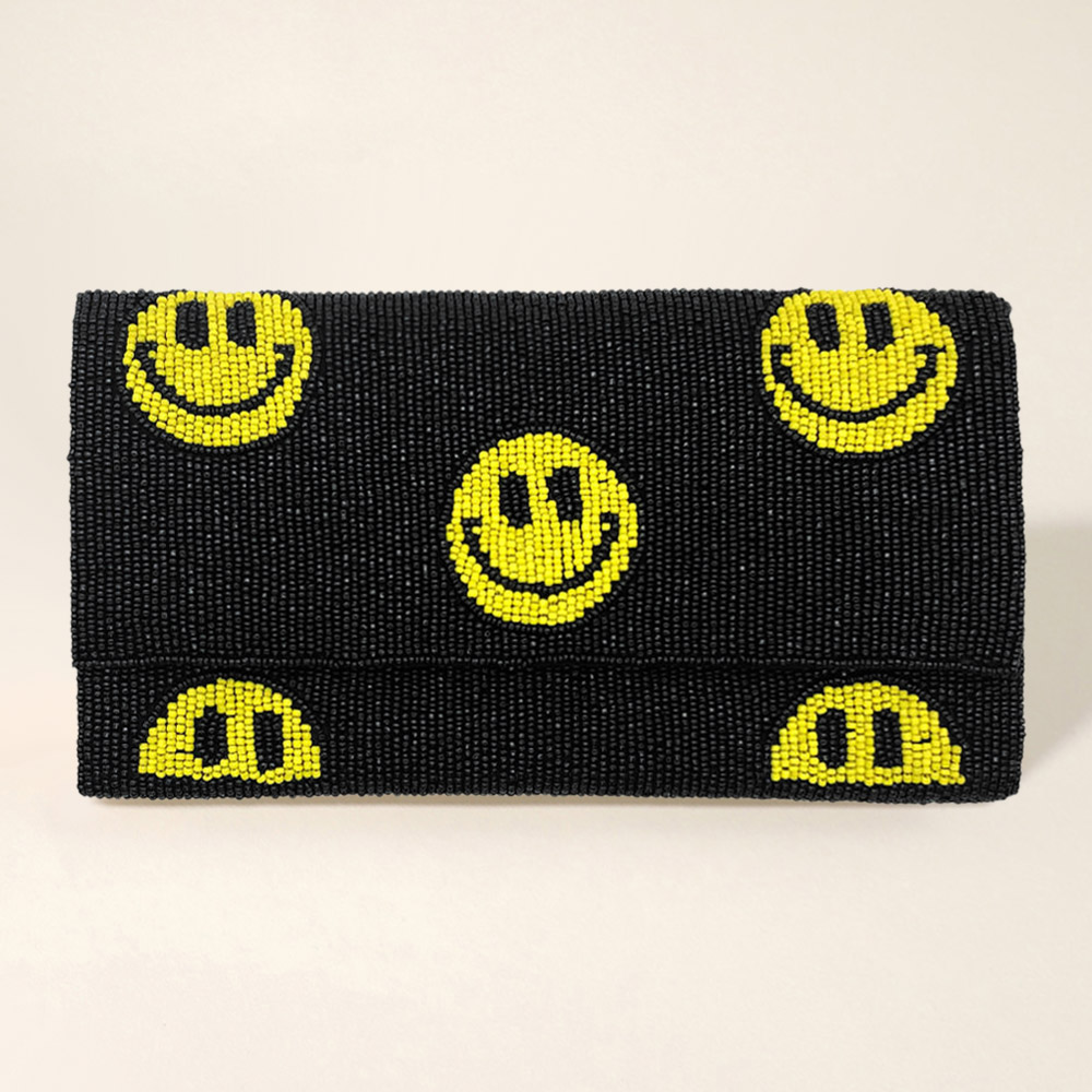 Smile Patterned Seed Beaded Clutch / Crossbody Bag