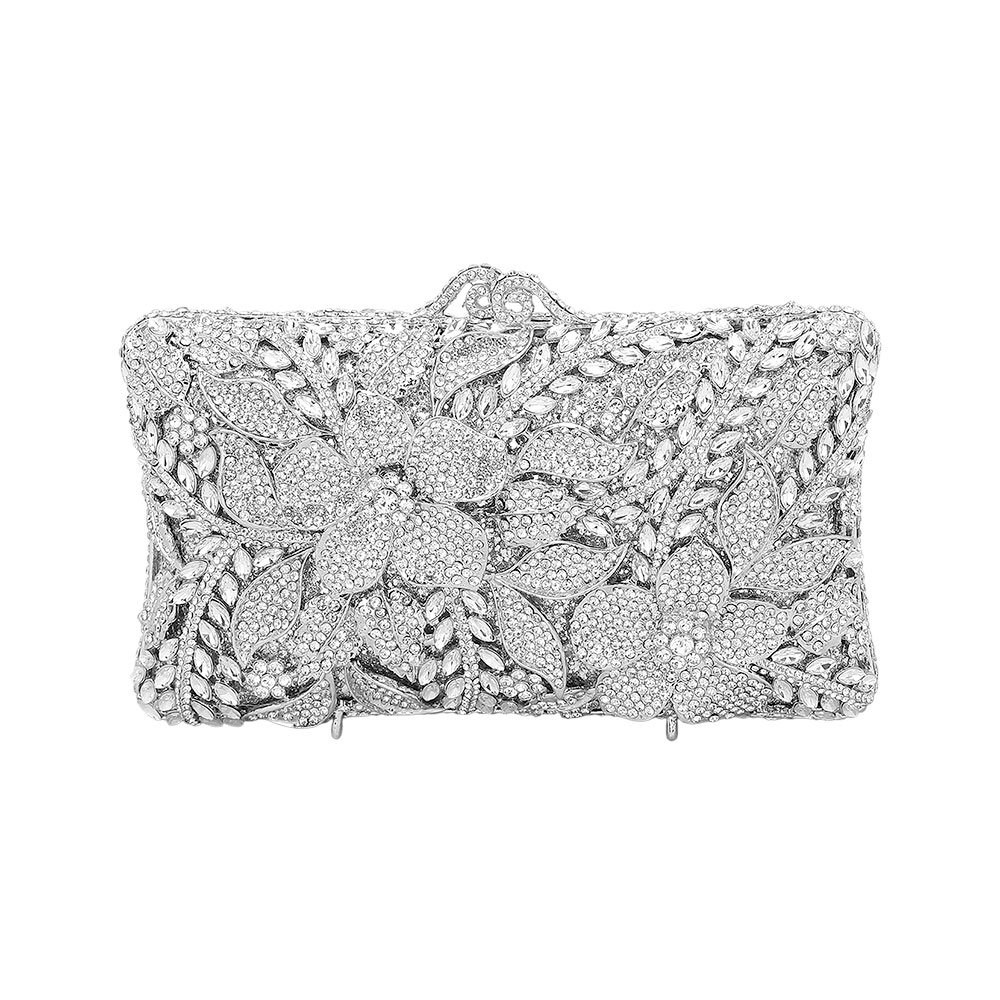 Crystal Rhinestone Embellished Floral Frame Evening Clutch Shoulder Bag