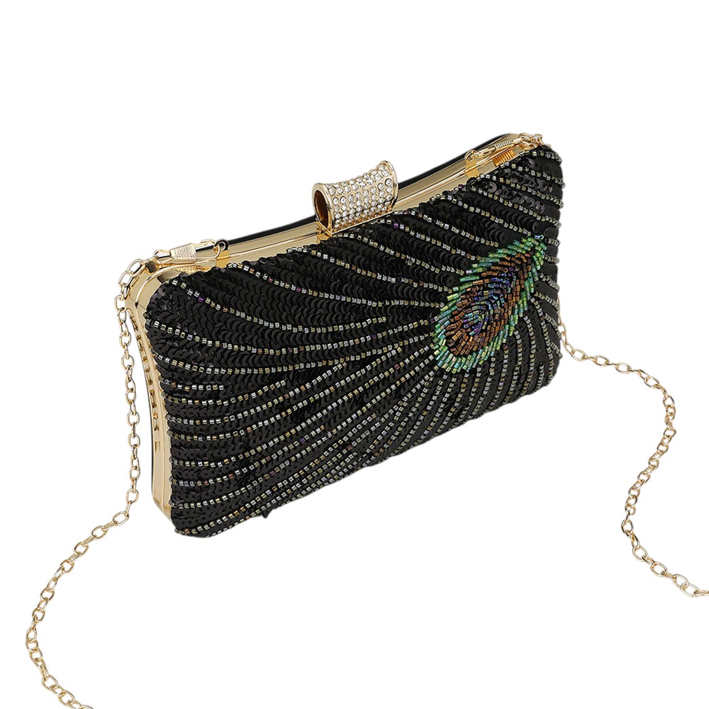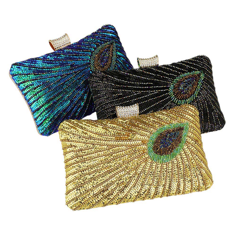 Beaded Sequin Peacock Clutch Evening Bag Crossbody Bag