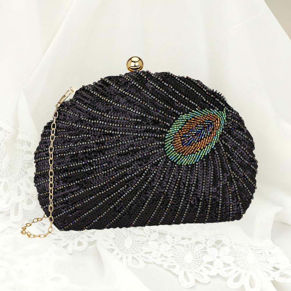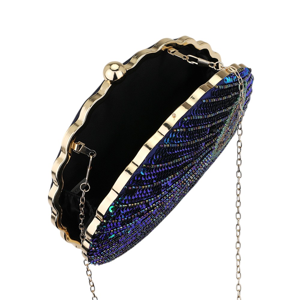 Beaded Sequin Peacock Clutch Evening Bag Crossbody Bag