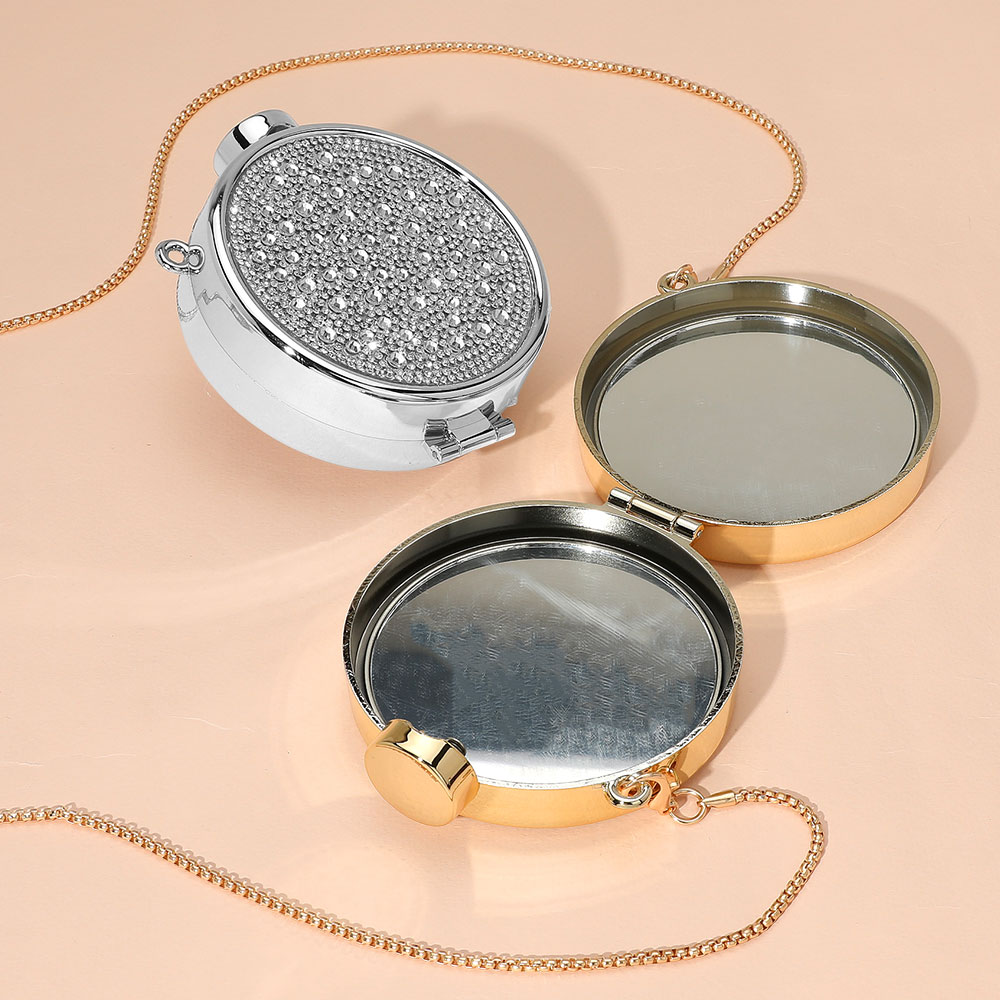Bling Studded Round Compact Clutch Evening Bag / Crossbody Bag