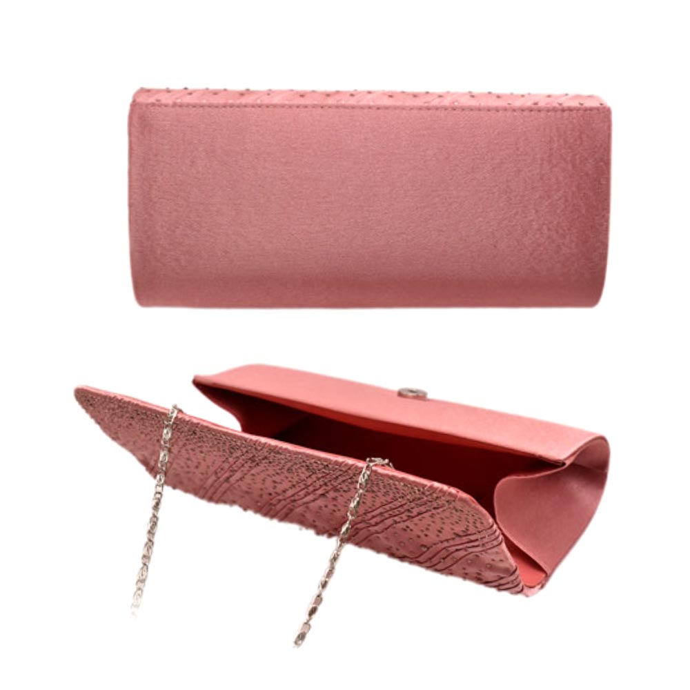 Details • Bag Size : 9" X 2" X 4.25" • Chain Strap Size : 23" L (Detachable) • One Inside Slip Pocket • Magnetic Closure • Shimmer and shine at any event with this elegant metallic evening clutch featuring a refined diagonal textured design. Perfectly sized for your essentials, this sleek and modern accessory adds a touch of sophistication to formal looks, weddings, and special occasions.