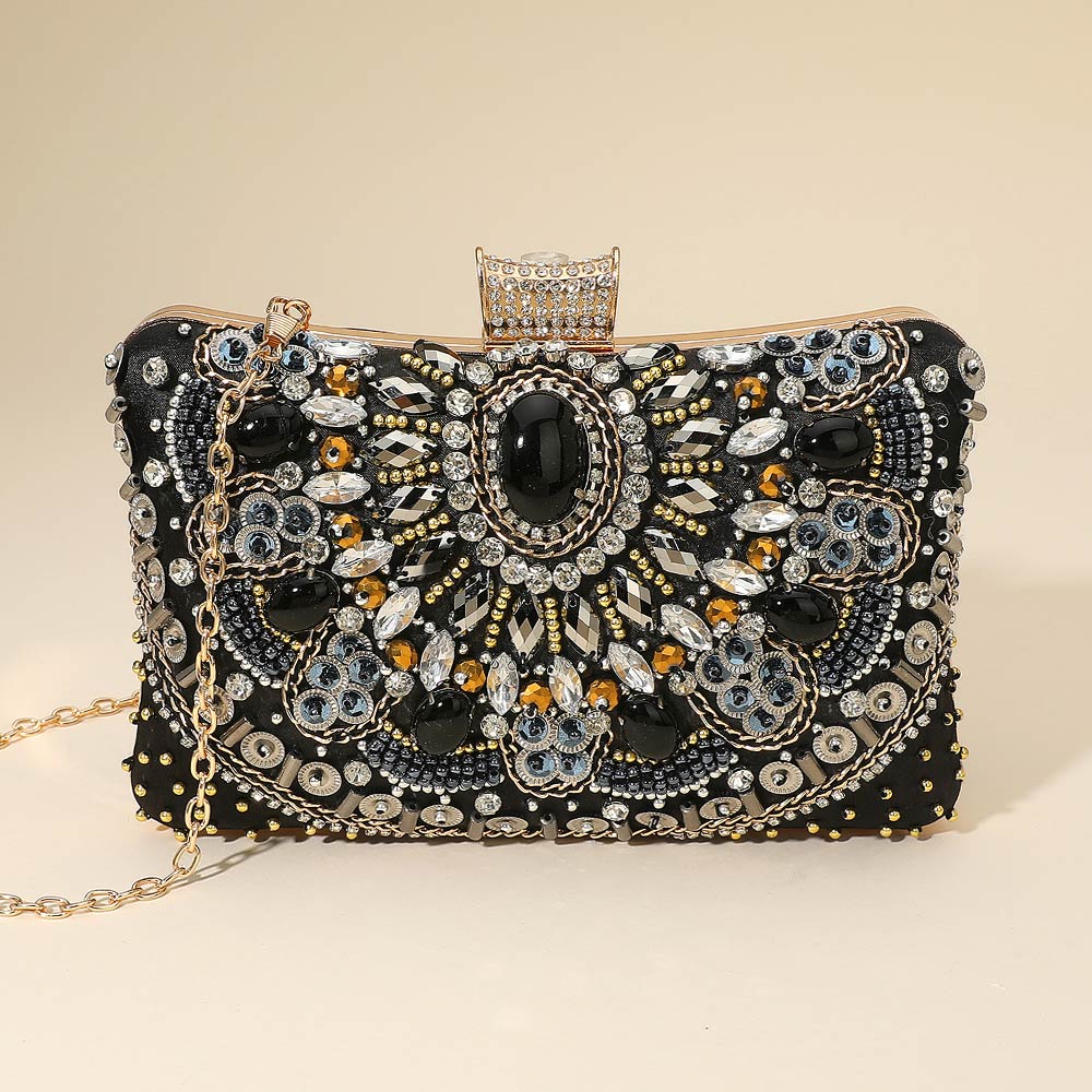 Ornate Gem Beaded Embellishment Evening Clutch Crossbody Bag