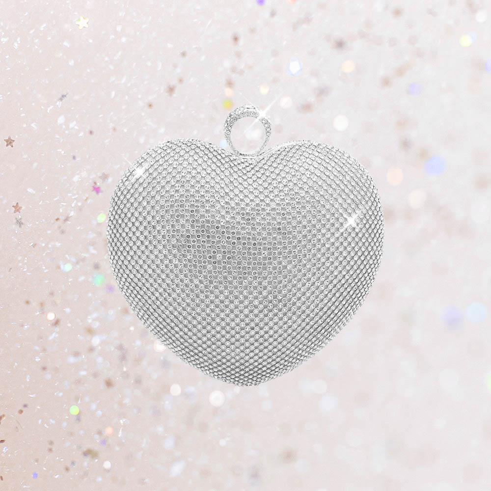 • Add romance to your look with this dazzling heart-shaped clutch, designed with a sparkling textured finish and elegant closure. Perfect for parties, weddings, and evening outings, this chic purse brings a touch of glamour and charm to any special occasion.