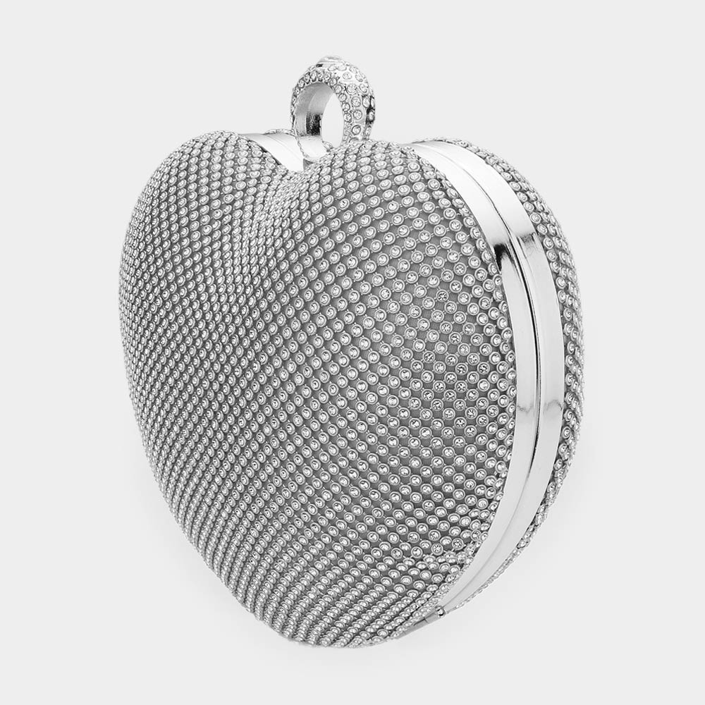 Rhinestone Embellished Heart Evening Clutch Crossbody Bag
