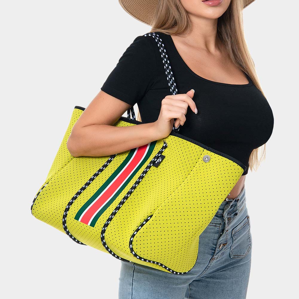 2PCS - Color Block Accented Solid Beach Tote Bag and Mini Pouch Bag Set
