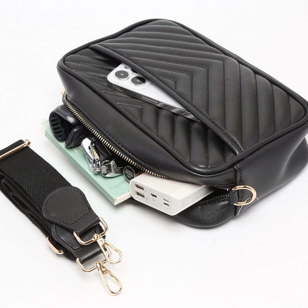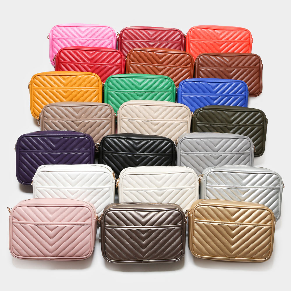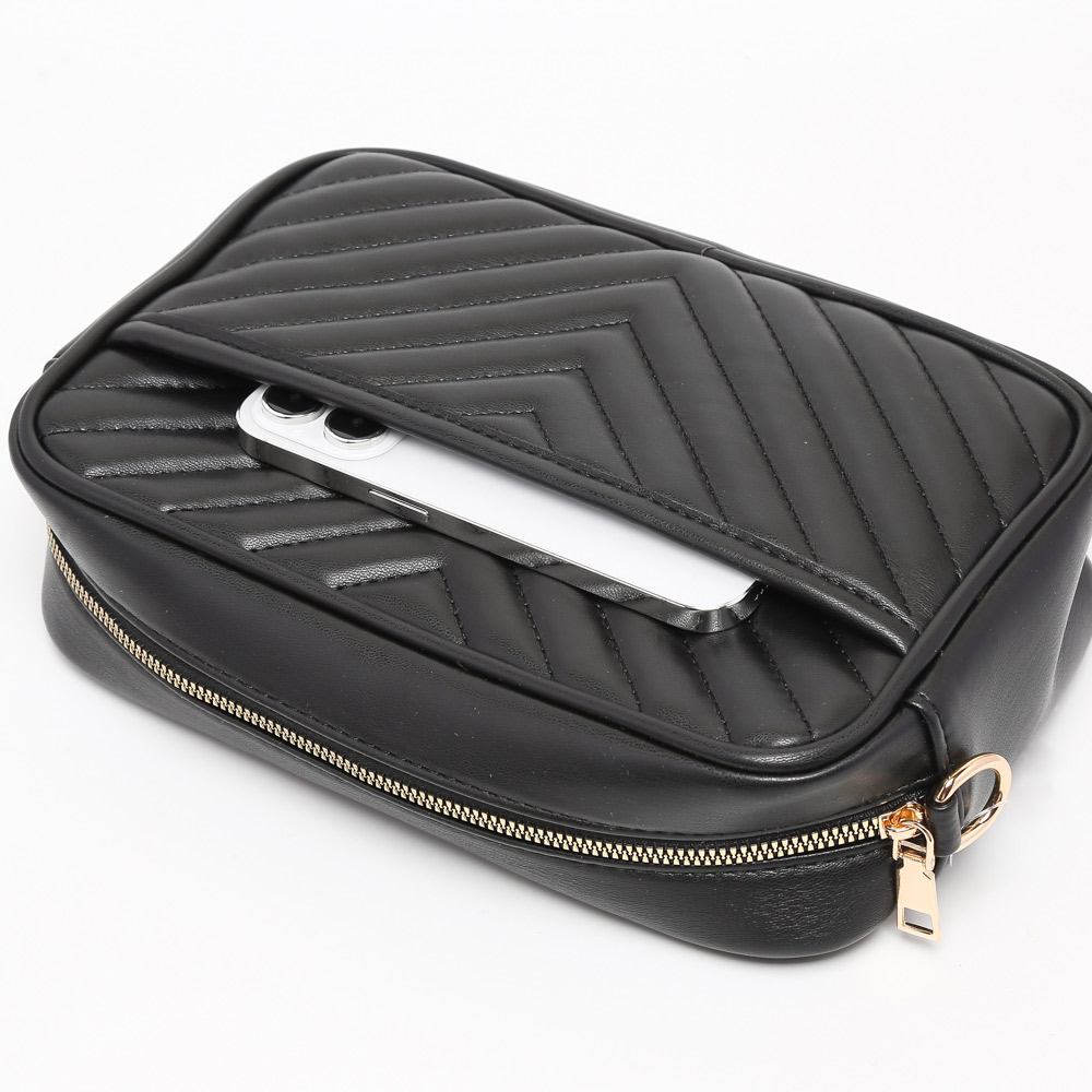 Chevron Patterned Faux Leather Round Crossbody Bag