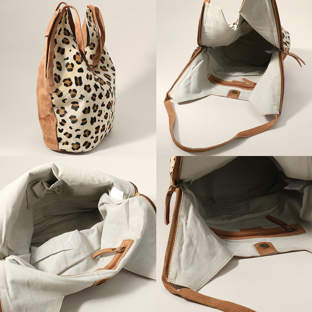 Leopard Patterned Genuine Fur Calf Hobo Bag / Shoulder Bag