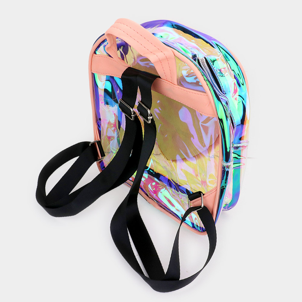 Faux Fur Heart Accented Clear Holographic Transparent Backpack