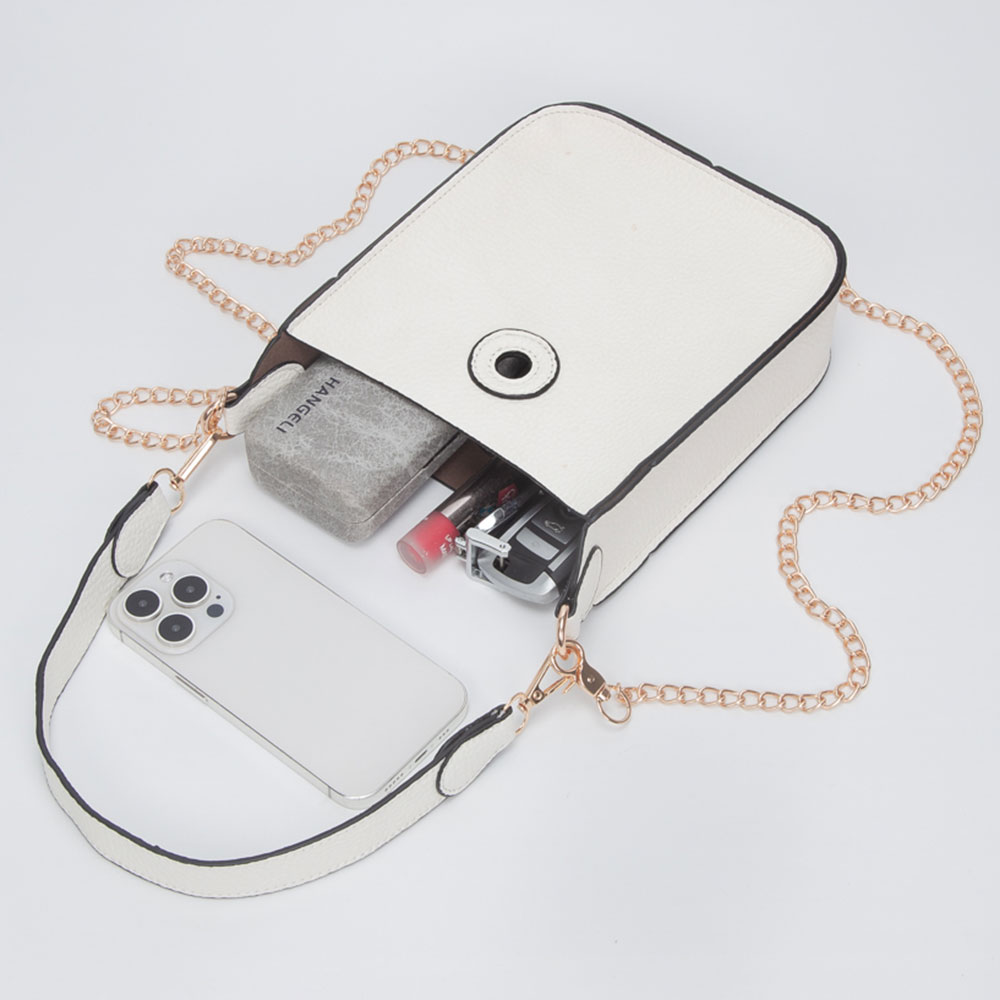 Details • Size : 7" X 8.5" X 2" • Strap 1 Size : 17.5" L / Detachable • Strap 2 Size : 47" L / Detachable • Discover a refined shoulder bag featuring a structured silhouette, elegant chain strap, and secure front toggle detail. Designed for effortless daily styling, it offers a polished look with practical space for essentials, making it an ideal accessory for work, outings, or everyday wear.