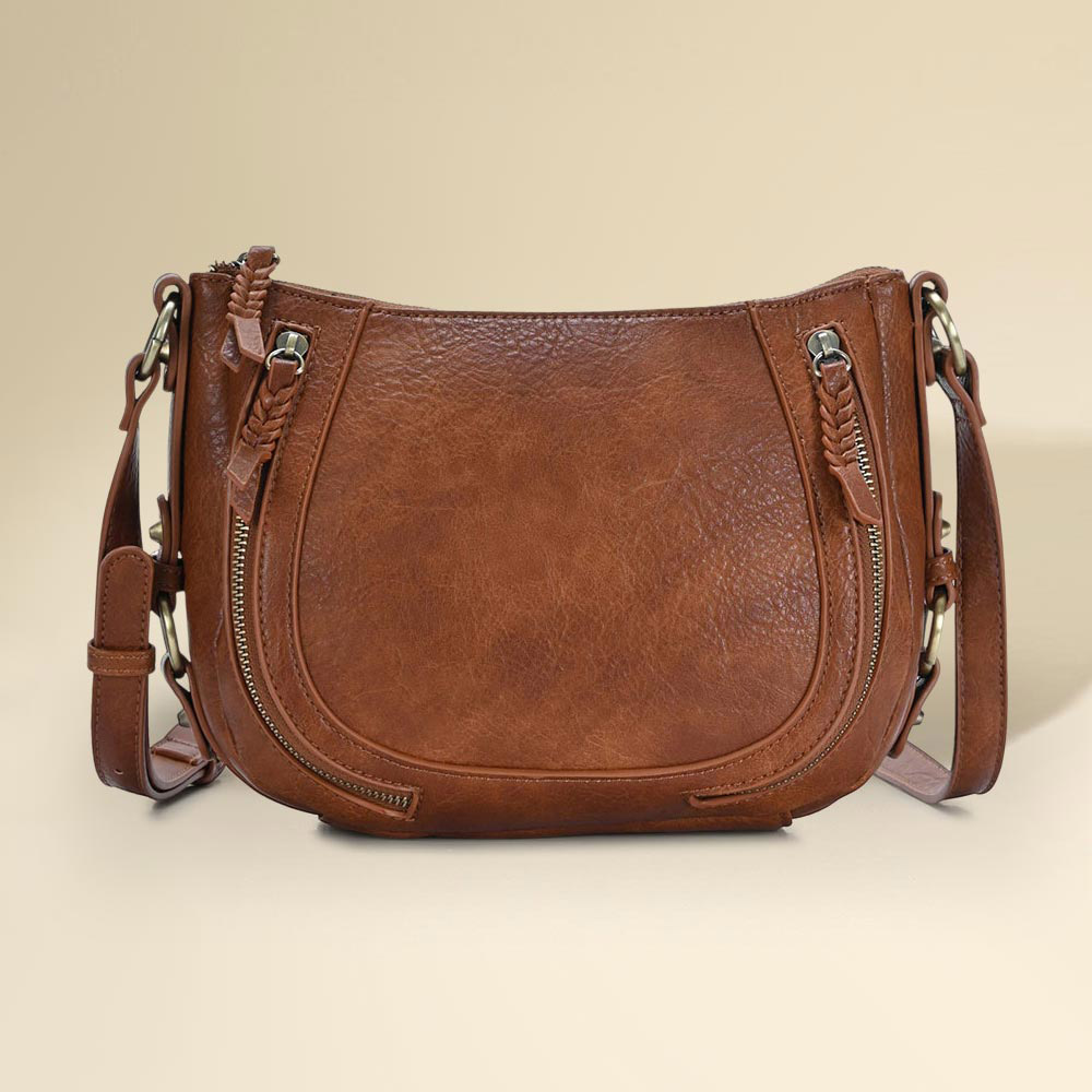 • Functional crossbody bag featuring dual zippered front pockets, braided pull accents, and an adjustable strap for versatile wear. Designed for daily use with a compact, stylish profile and practical storage.