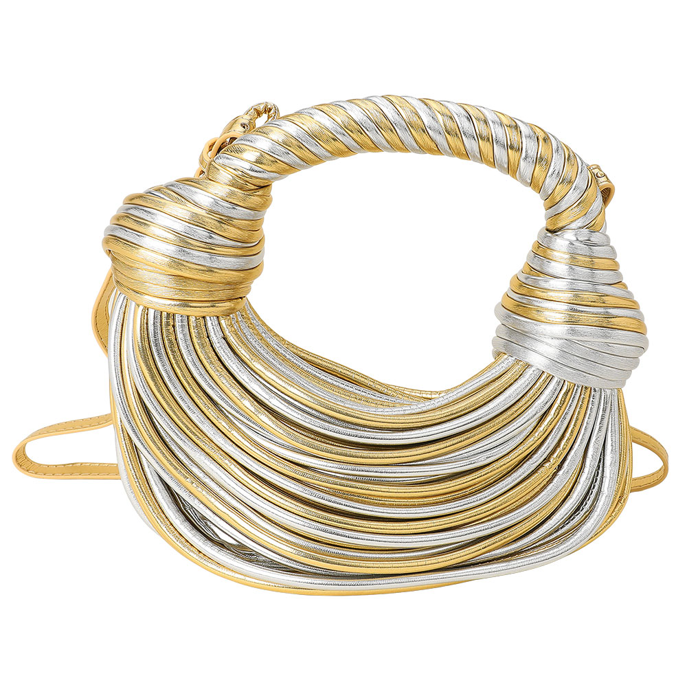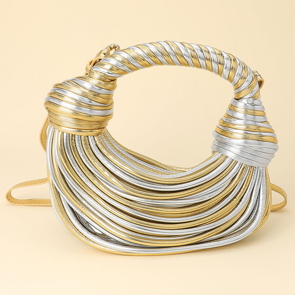 Details • Size : 11" X 4" X 3" • Top Handle Size : 5" L • Strap Size : 40" L / Adjustable, Detachable • Zipper Closure • Stand out with this textured statement shoulder bag featuring a sculpted design and intricate wrapped detailing. Its modern silhouette and artistic structure make it a versatile piece that adds a touch of high-fashion sophistication to any day or evening ensemble.