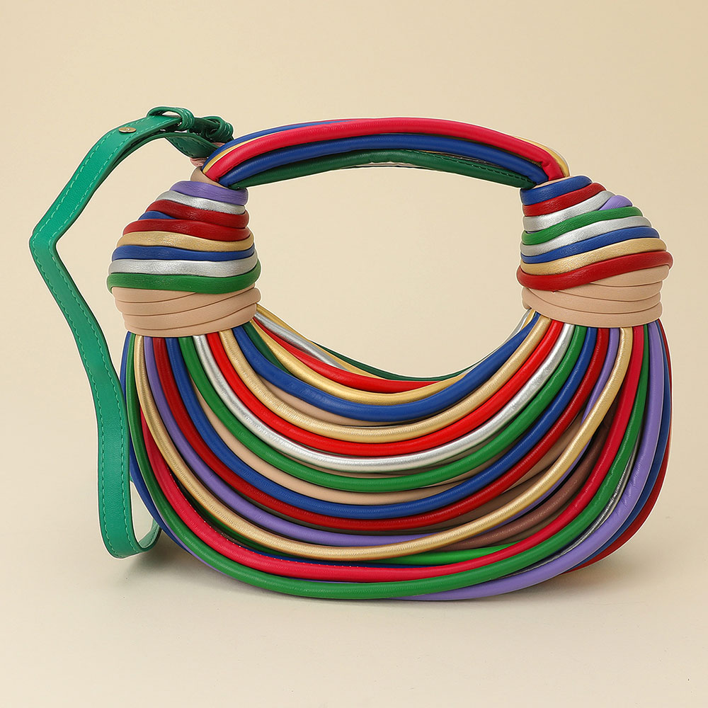 • Stand out with this textured statement shoulder bag featuring a sculpted design and intricate wrapped detailing. Its modern silhouette and artistic structure make it a versatile piece that adds a touch of high-fashion sophistication to any day or evening ensemble.