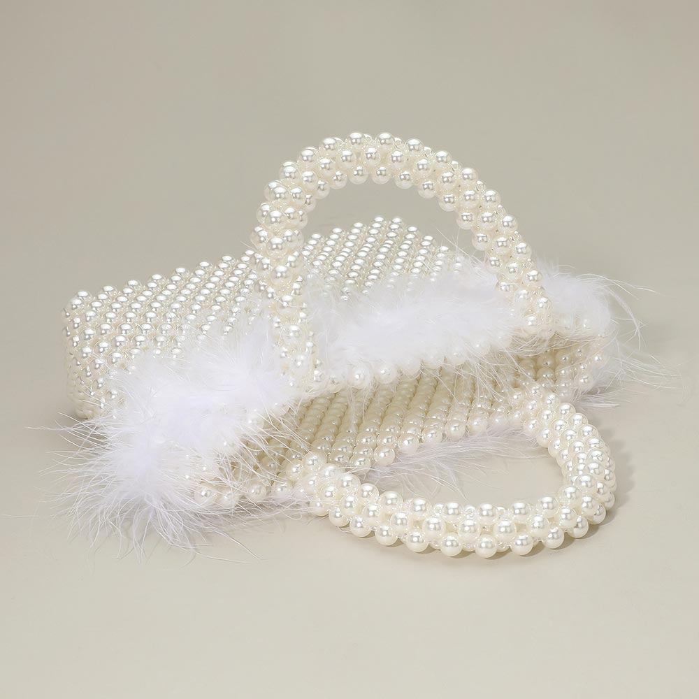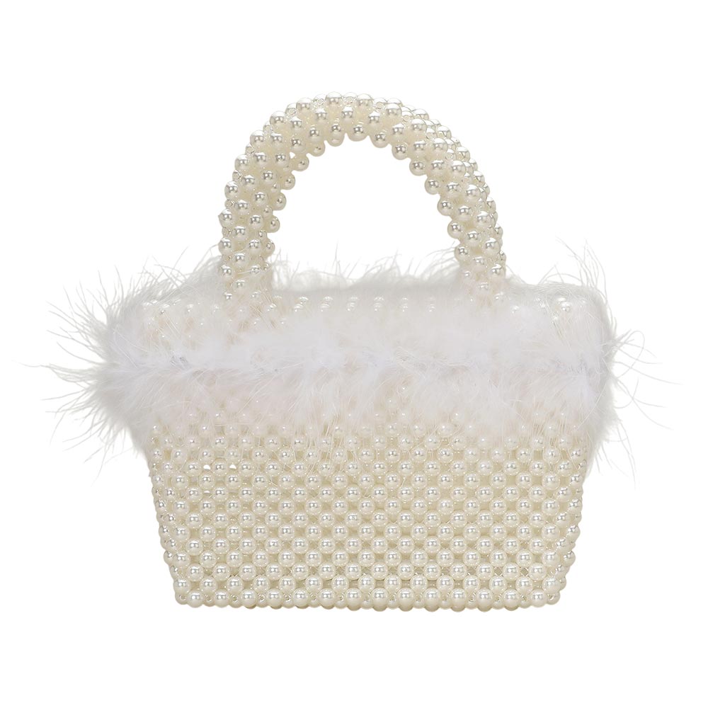 • Chic mini tote featuring intricate bead detailing, soft feather trim and a sturdy handle. Perfect for parties, events, evening outfits and elegant special occasion looks.