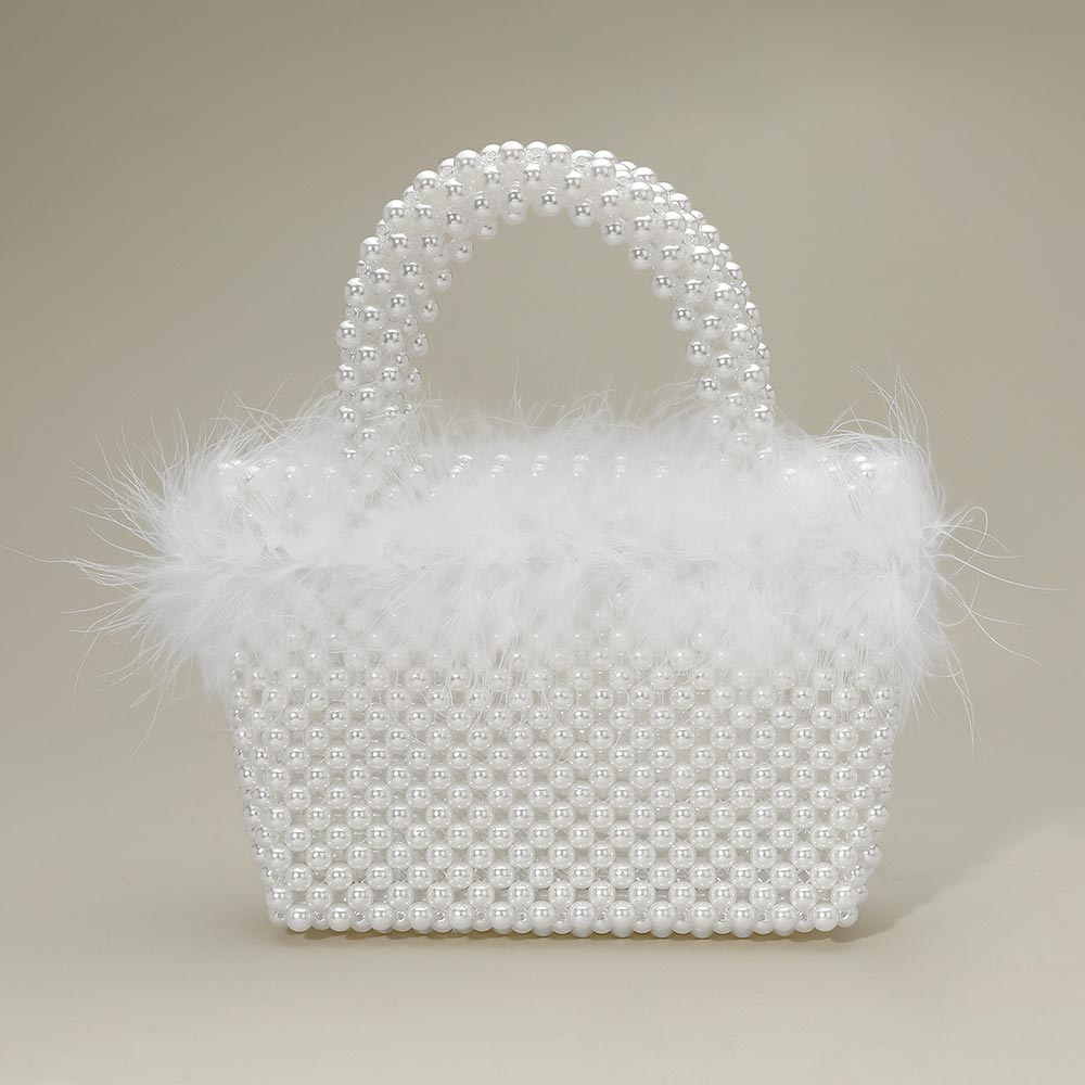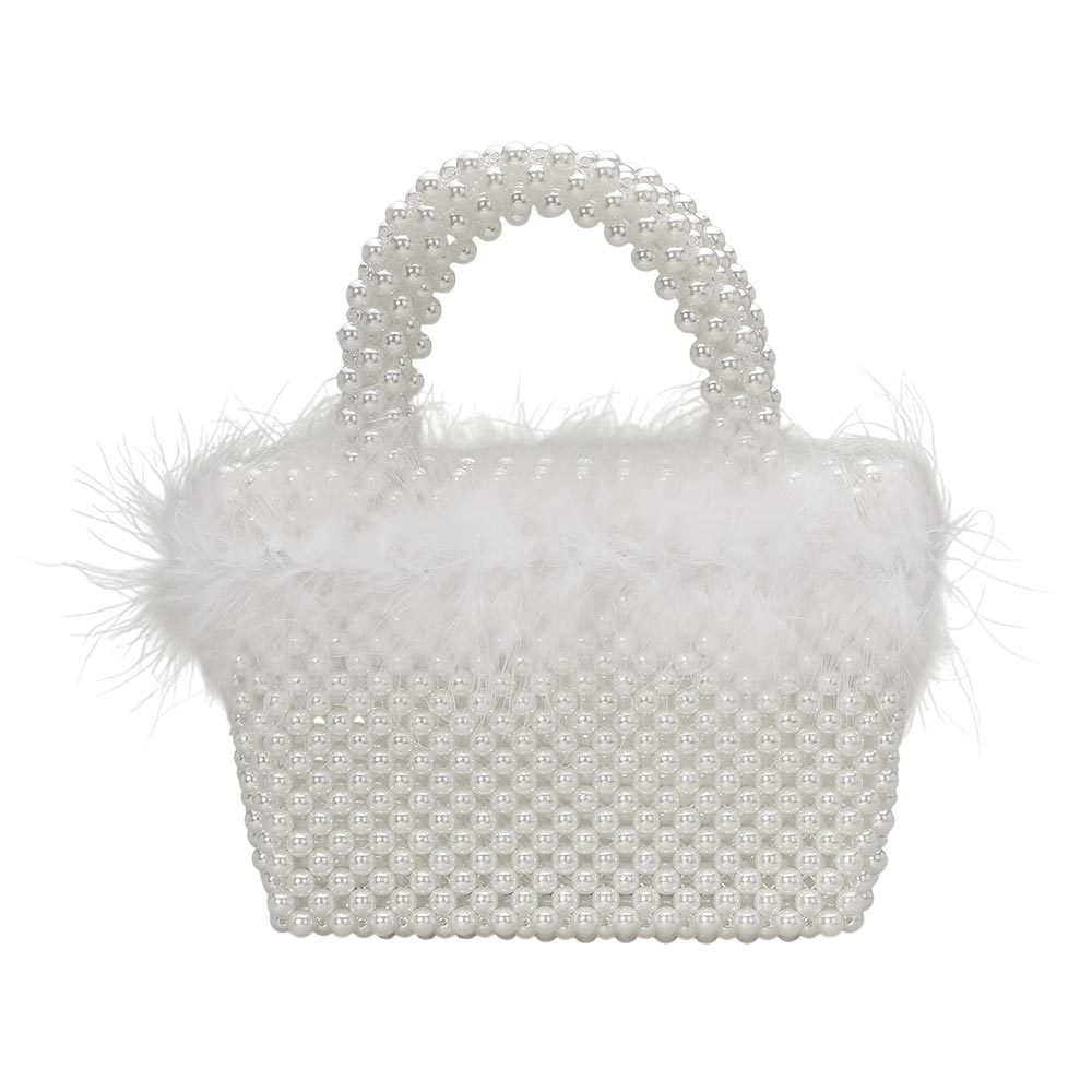 • Chic mini tote featuring intricate bead detailing, soft feather trim and a sturdy handle. Perfect for parties, events, evening outfits and elegant special occasion looks.
