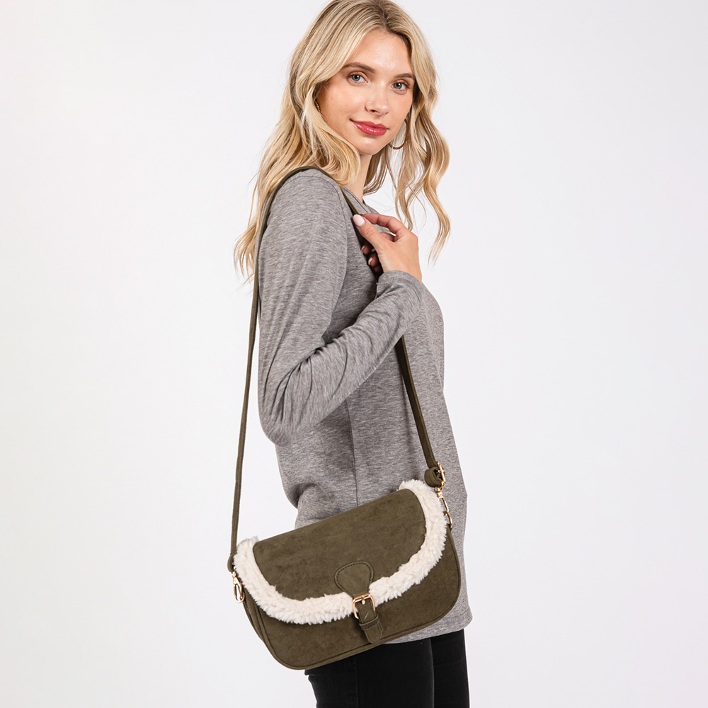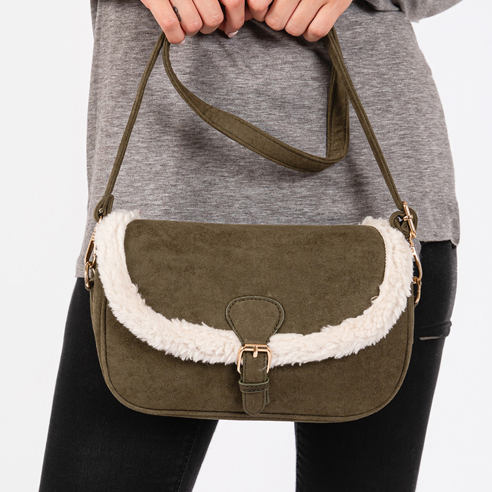 Fleece Trimmed Solid Crossbody Bag