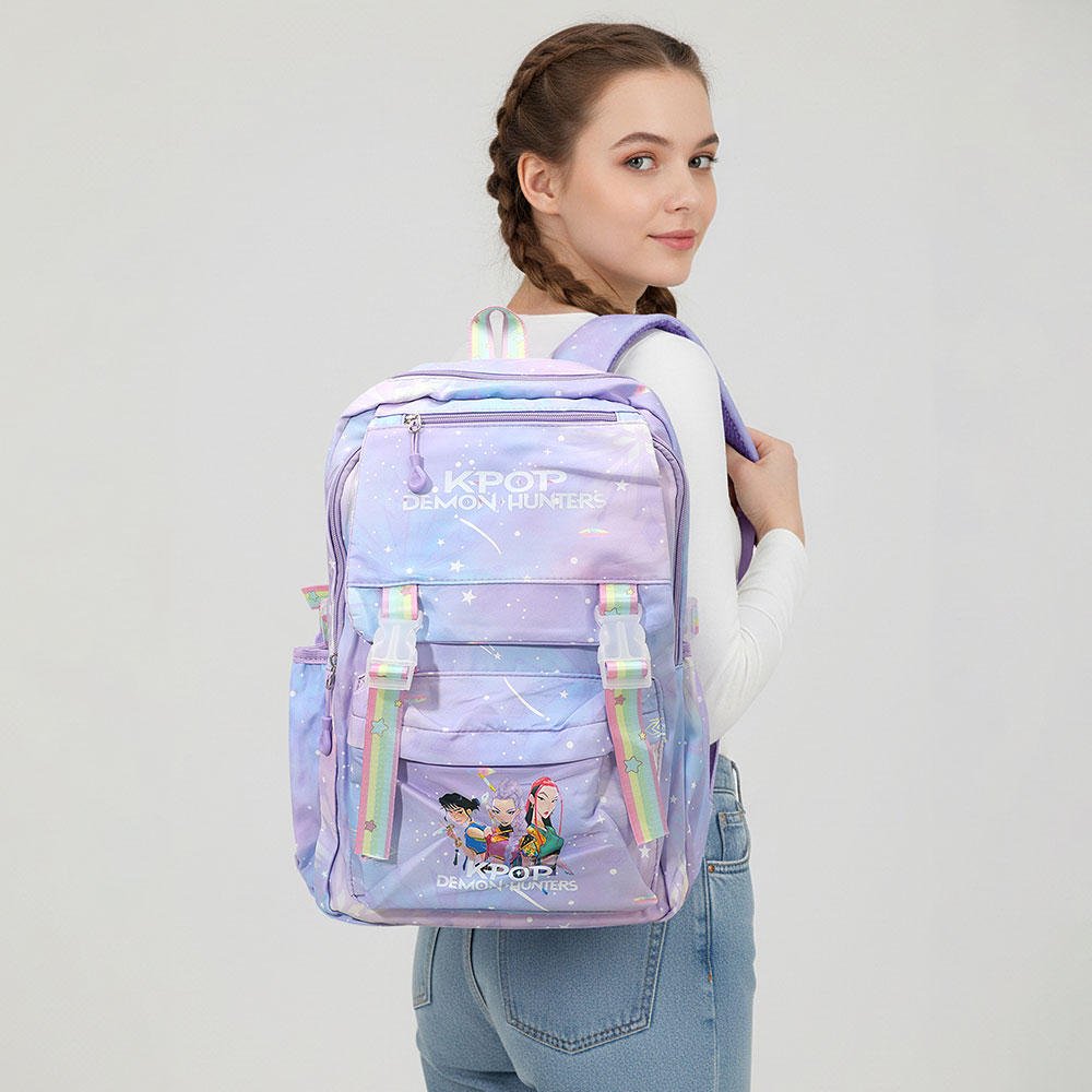 • Stylish character backpack featuring the K-Pop Demon Hunters theme with eye-catching graphics and practical storage. Designed for everyday use, school, travel, and fan gifting, this backpack offers comfortable wear, organized compartments, and standout pop-culture appeal for trend-focused accessory collections.
