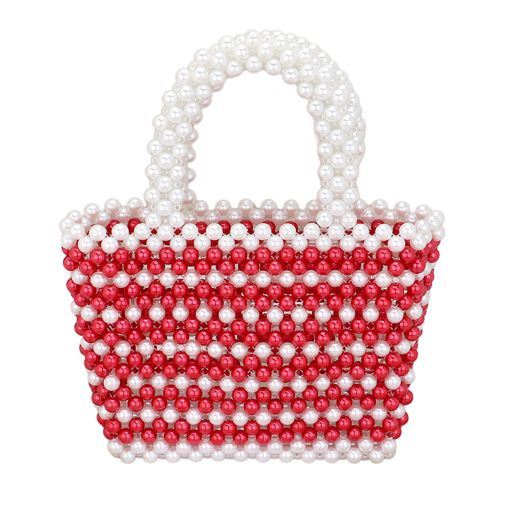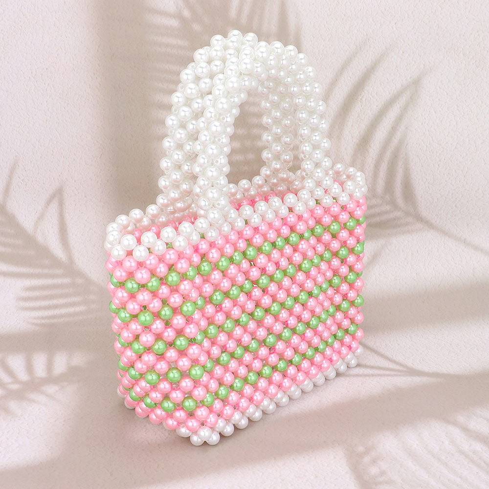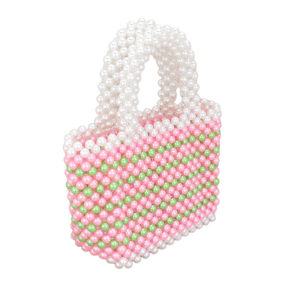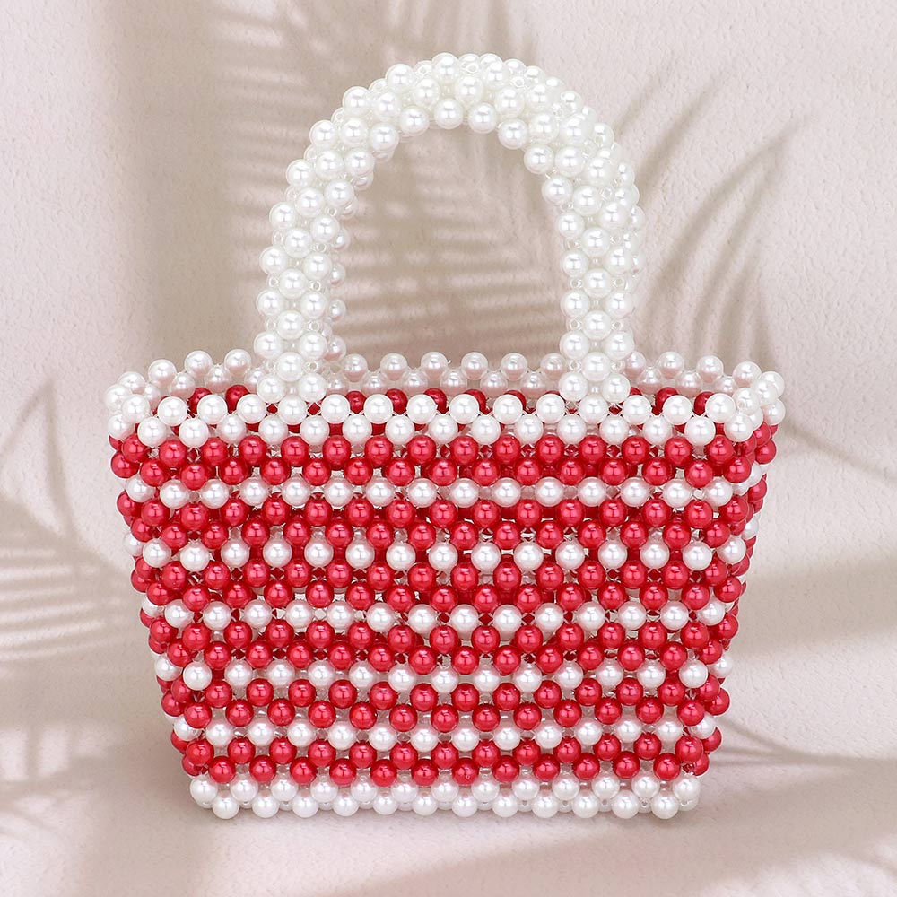 Details • Bag Size : 7" X 6" X 3.5" • Top Handle Size : 4.25" L • No Inside Pocket • This mini handbag features a refined beaded exterior with a structured silhouette and curved top handles. Ideal for evening events or statement accessorizing, it brings a bold yet elegant flair to any outfit.