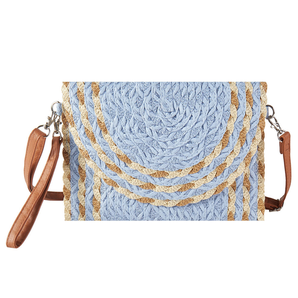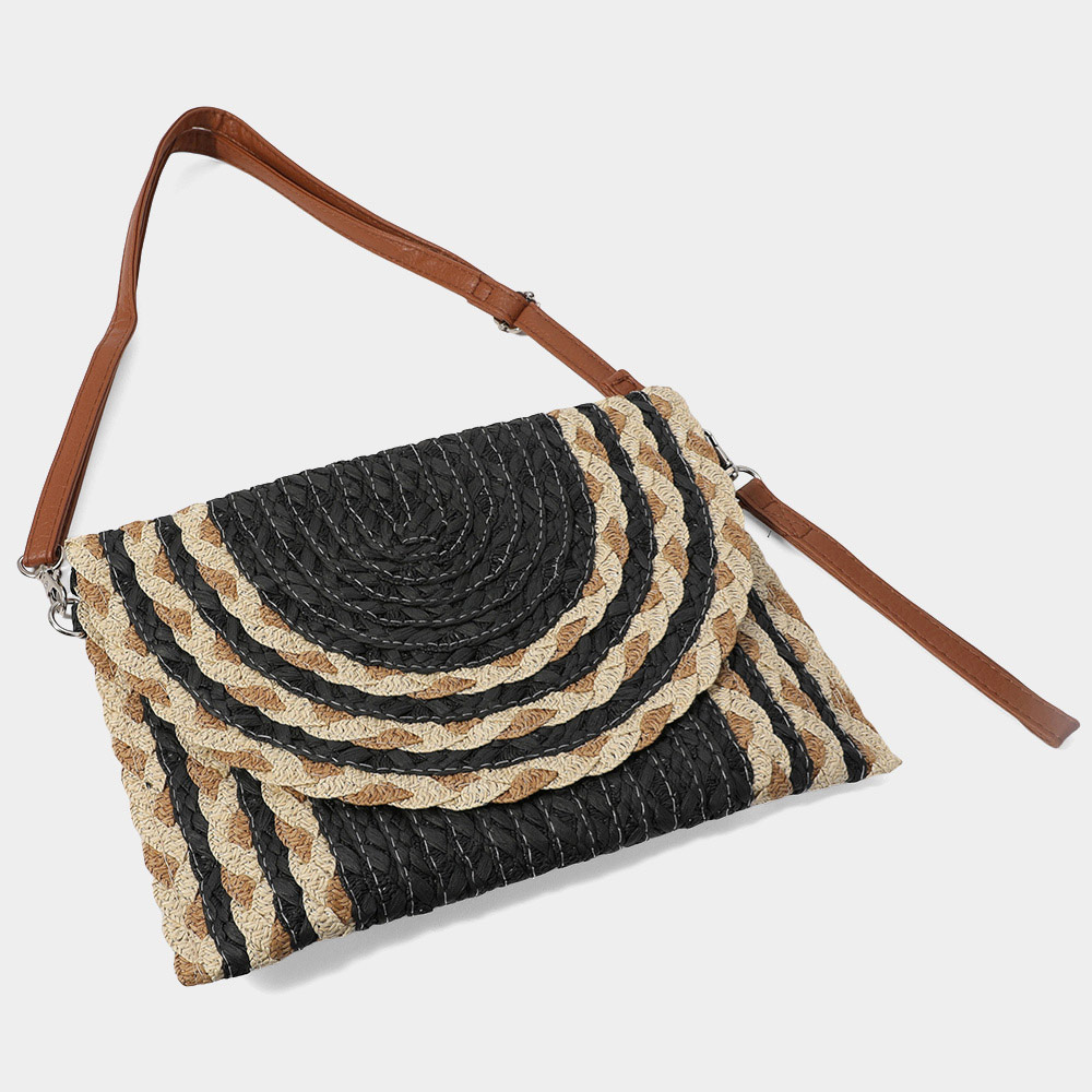 Mixed Color Detail Straw Clutch / Crossbody Bag