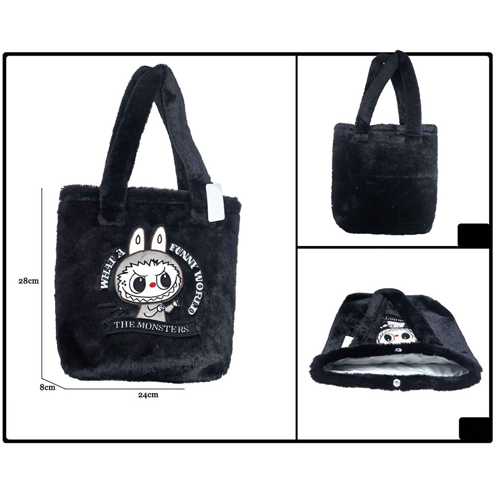 Details • Size : 9.5" X 11" X 3" • Top Handle Size : 8" L • Cute plush tote bag featuring a fun cartoon embroidery design with soft handles for comfort and style. Lightweight and trendy, this fuzzy bag is perfect for casual outings, daily essentials, or as a playful accessory to showcase personality while staying cozy and fashionable all year round.