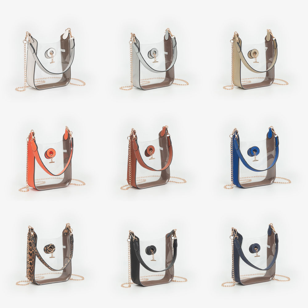 Details • Size : 6.5" X 9" X 2.5" • Strap 1 Size : 17.5" L / Detachable • Strap 2 Size : 46" L / Detachable • This transparent chain shoulder bag blends modern minimalism with chic detailing. Featuring a clear structured body, secure clasp, and metallic chain strap, it’s perfect for concerts, events, or everyday outings, offering easy visibility and sleek sophistication in one stylish piece.