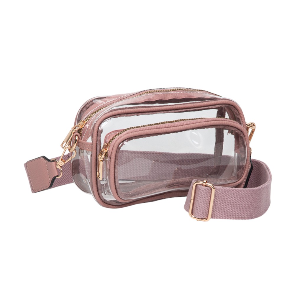 Details • Size : 8" X 5" X 3.5" • Strap Size : 53" L / Detachable, Adjustable • One Outside Zipper Pocket • Zipper Closure • Be game day ready with this clear stadium-approved crossbody bag, featuring white trim, dual zip compartments, and an adjustable strap for hands-free comfort. Perfect for concerts, sporting events, festivals, and venues with clear bag policies, offering style, security, and convenience on the go.