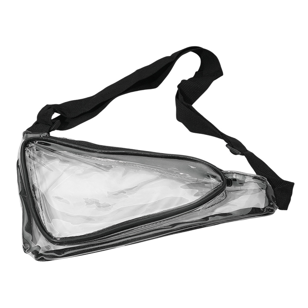 Details • Size : 12" X 6.5" X 1.75" • Adjustable Strap • Zipper Closure • This clear sling bag features a triangular design with adjustable strap and secure zip closure. Perfect for stadiums, concerts, and travel, it keeps your essentials visible and organized while meeting security requirements.