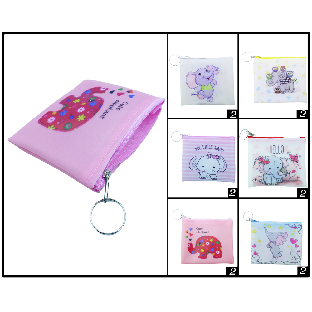 Details • Size : 4.25" X 3.75" • Zipper Closure • Charming elephant-themed pouch with zipper closure and keyring for easy attachment. Compact and practical for storing coins, keys, or small essentials. Great for kids, everyday use, or as a party favor.