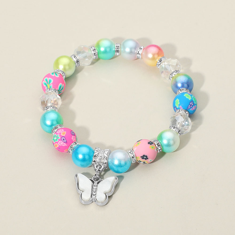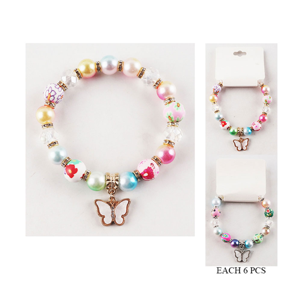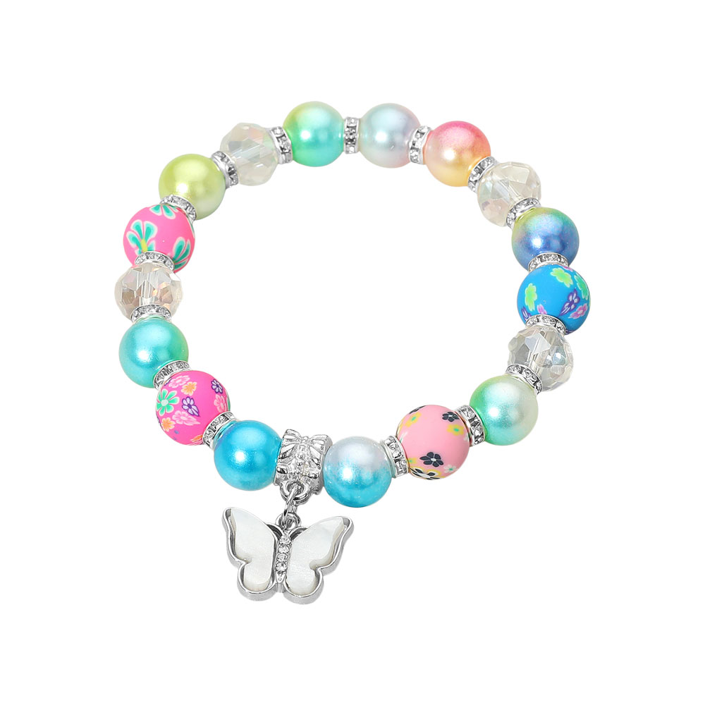Details • Size : 0.4" H • Charm Size : 0.7" X 0.5" • Stretchable • This multicolor beaded stretch bracelet showcases vibrant beads with floral and iridescent finishes, accented by a delicate butterfly charm. Playful yet elegant, it adds a joyful pop of color and sparkle to any outfit, making it perfect for bright, cheerful, everyday styling.