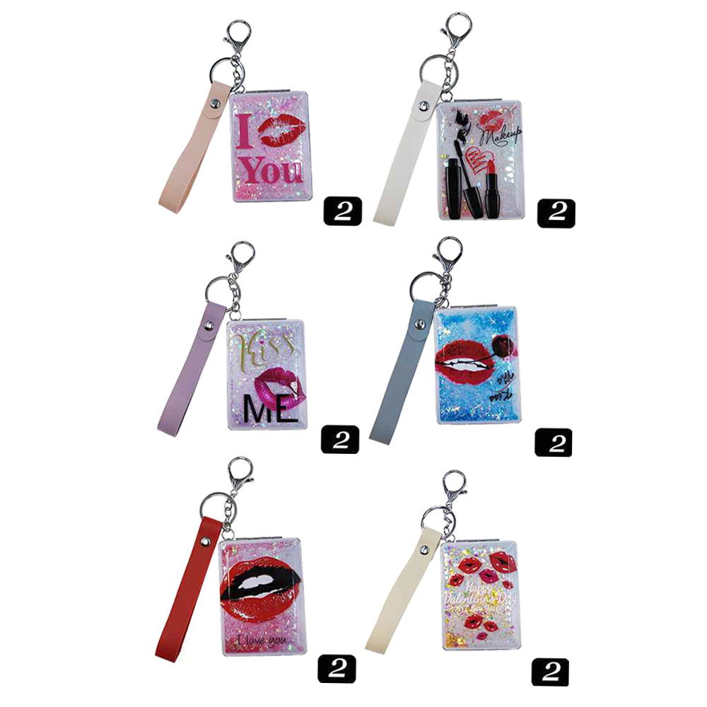 Details • Size : 2.4" X 3.25" • Strap Size : 4" L • 2 In 1 - Plain Mirror And Magnifying Mirror • Glitter “I Love You” compact mirror keychain featuring dual mirrors, secure clasp, and convenient wrist strap for quick touch-ups on the go. Perfect for gifting, party favors, travel kits, or adding a sweet, practical accessory to keys, purses, backpacks, and cosmetic bags.