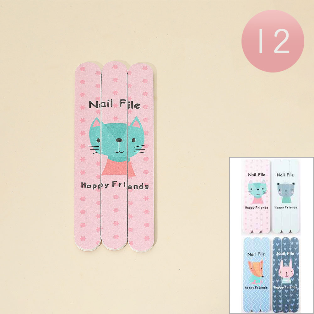 12 SET OF 3 - Animal Happy Friends Message Printed Nail Files
