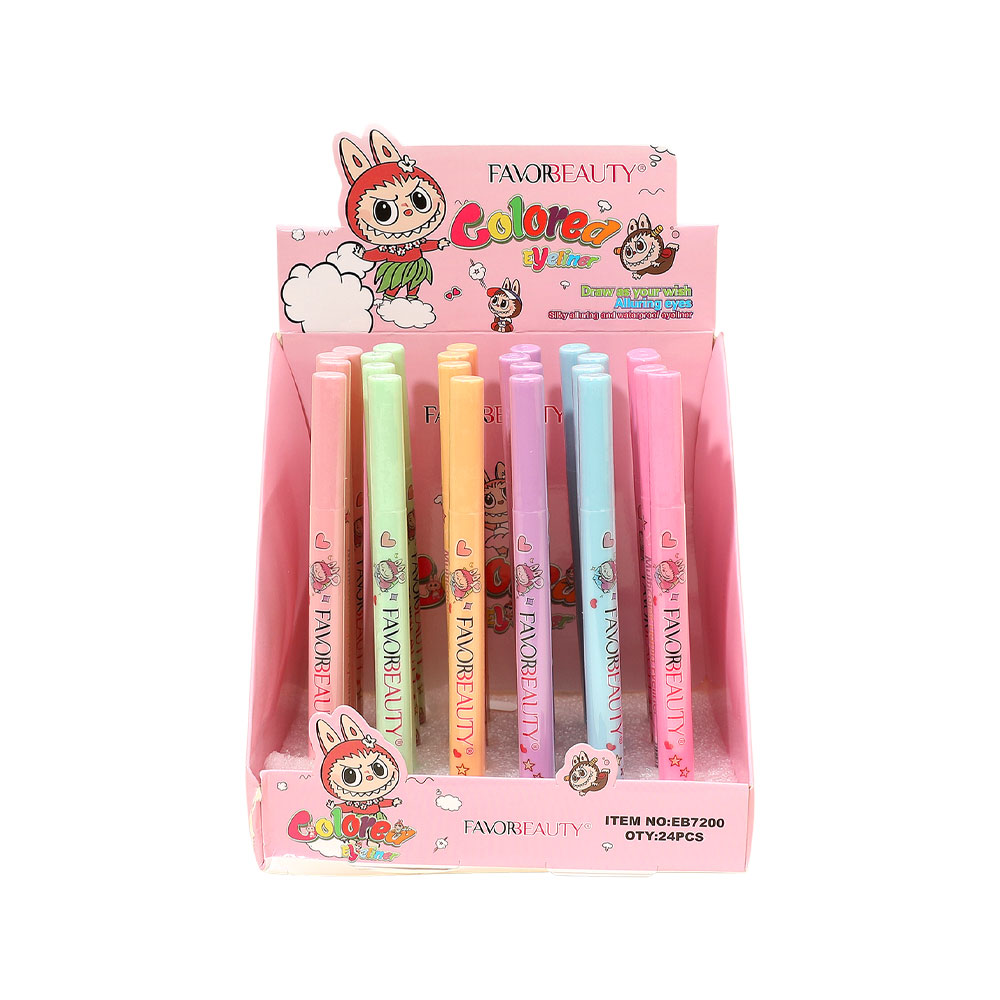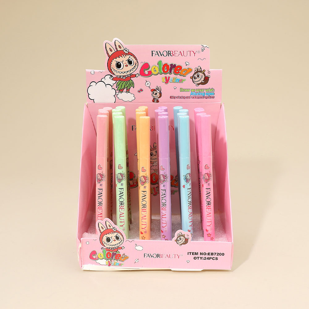 Details • Size : 5.25" L • Playful monster bunny character eyeliner pen display set with 24 individual units, perfect for retail counters, party favors, or personal makeup collections. Each pen offers smooth application and convenient handling in a compact display that attracts attention and boosts impulse purchases.