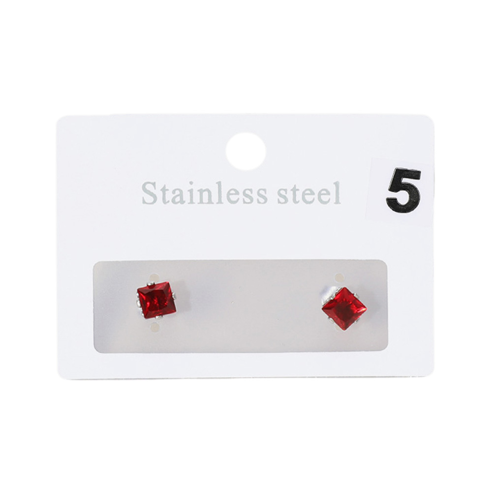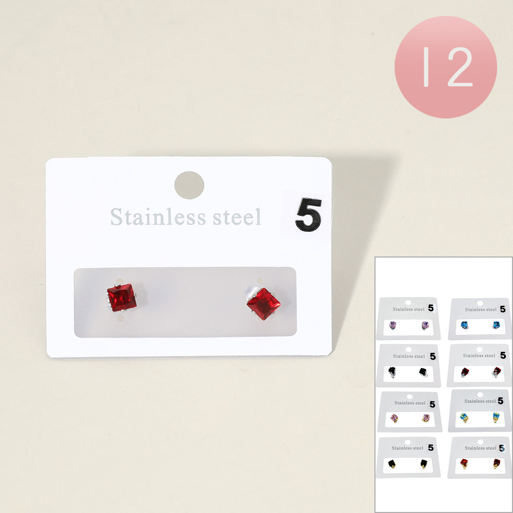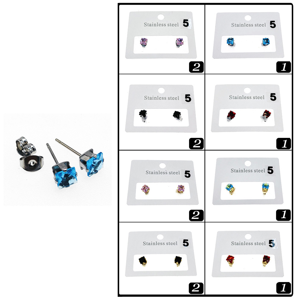 12Pairs - Stainless Steel 0.5mm Square Stone Stud Earrings