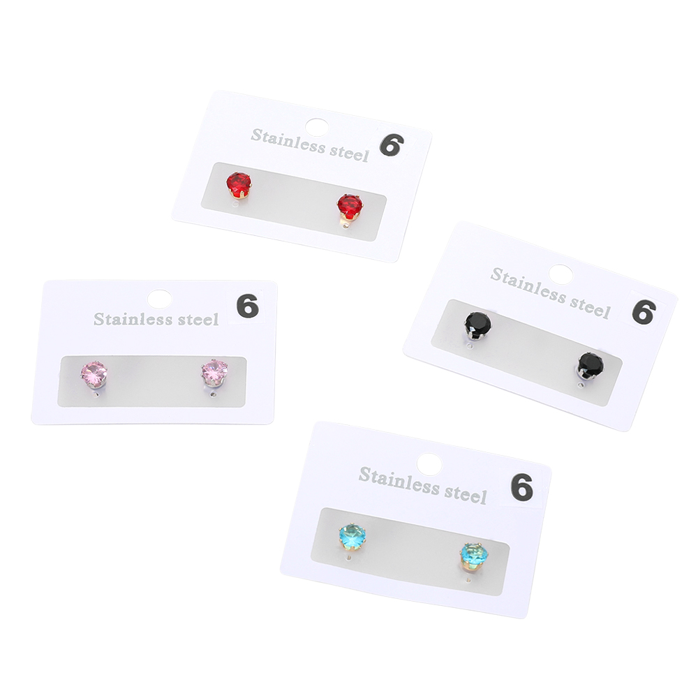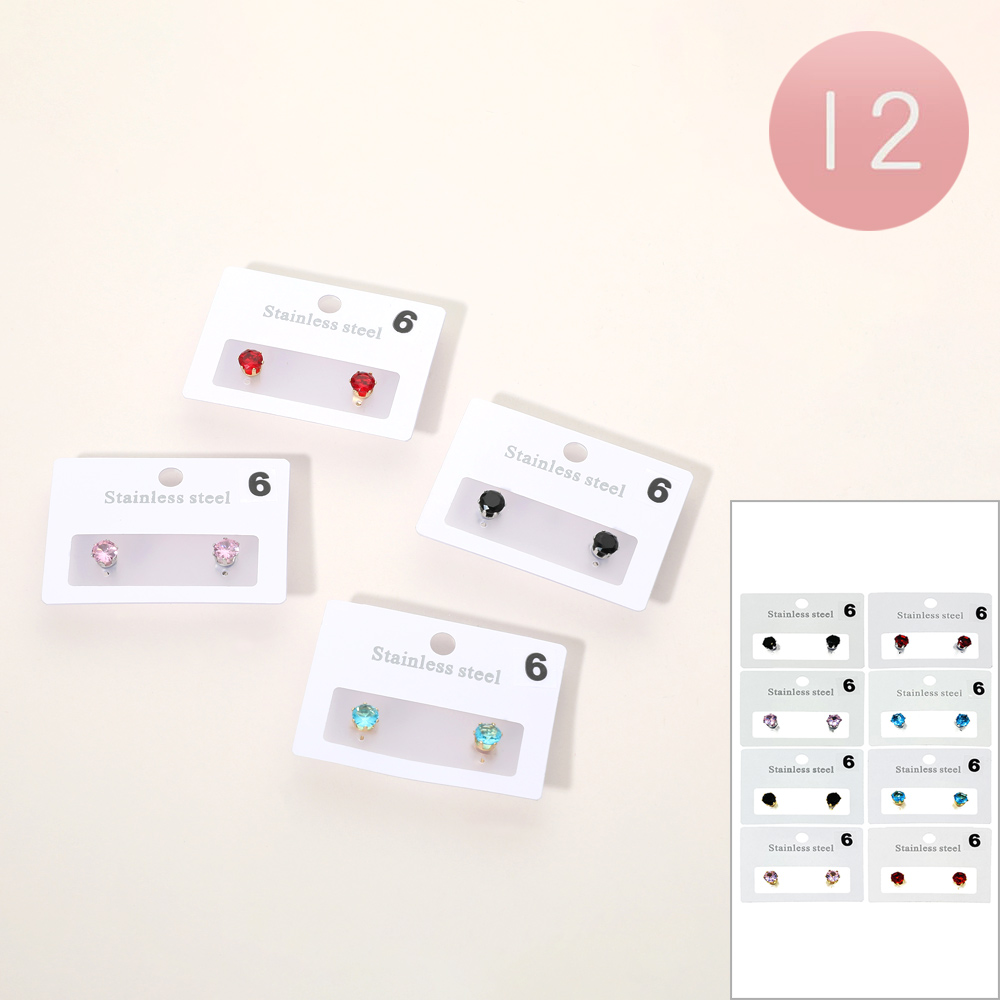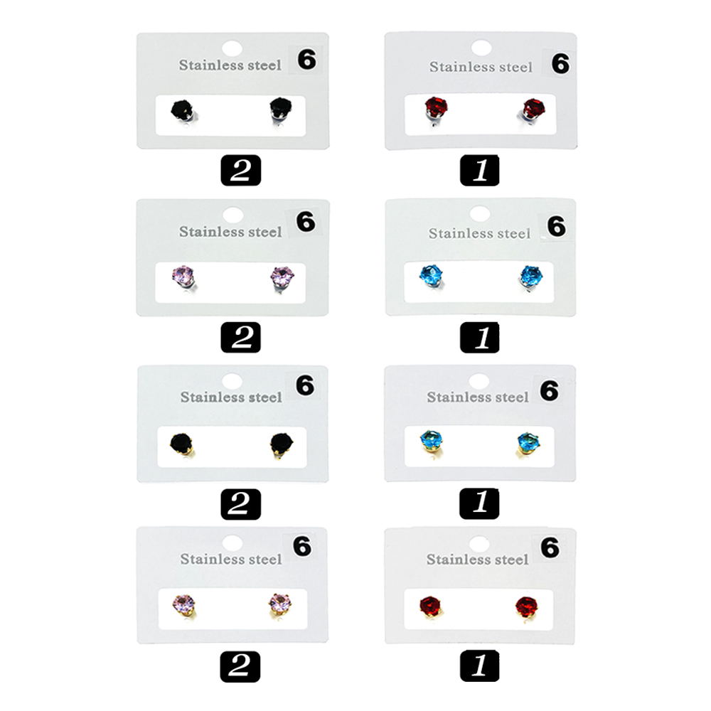 12Pairs - Stainless Steel 0.6mm Round Stone Stud Earrings