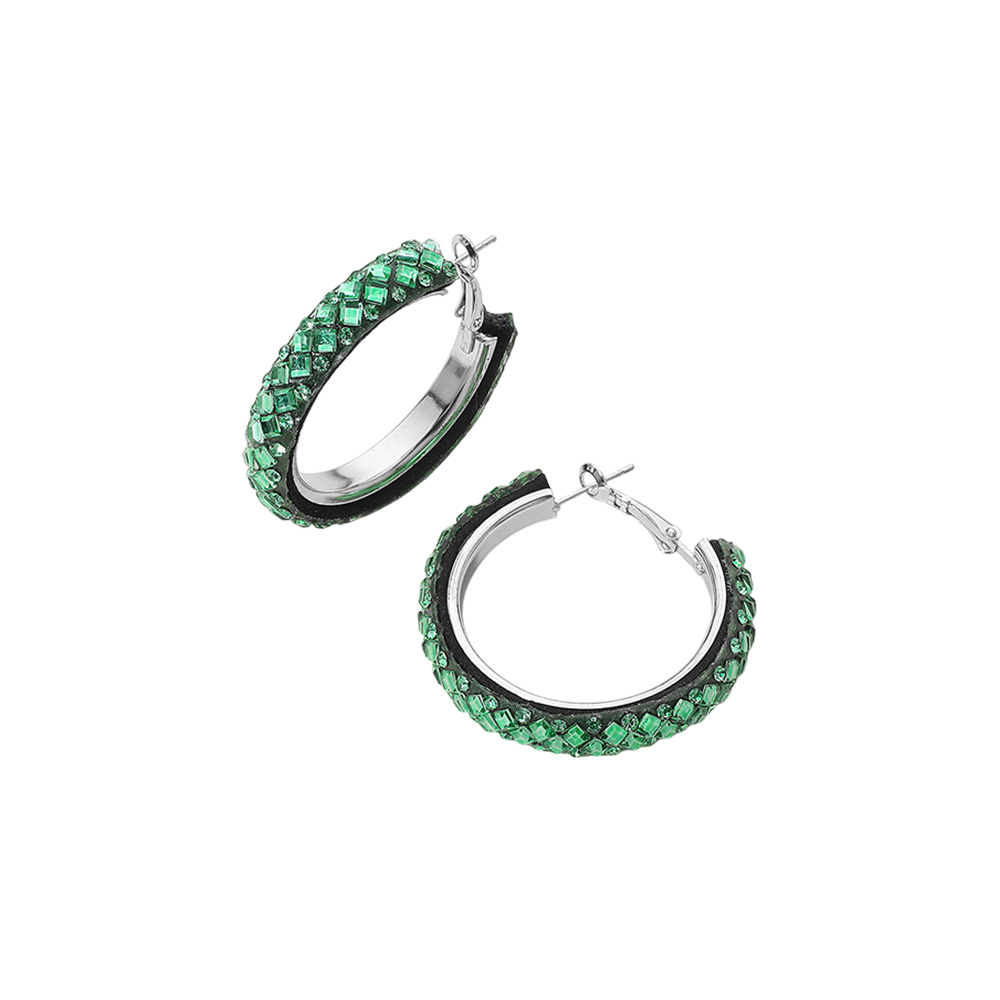 Glass Crystal Stone Accented Link Dangle Evening Earrings