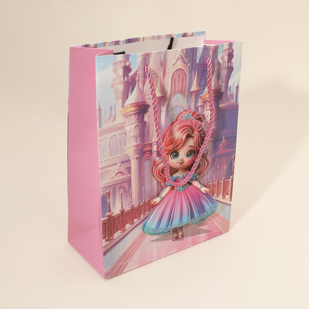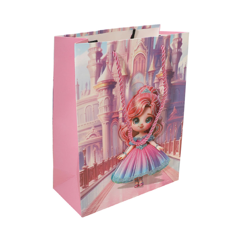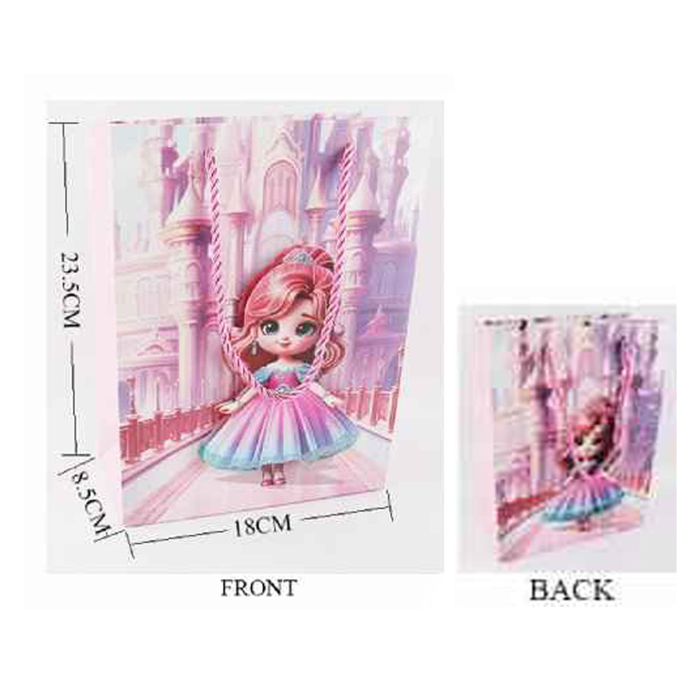 Details • Size : 7" X 9.25" X 3.35" • Top Handle Size : 4.75" L • Princess Castle Gift Bag showcases a charming fairy-tale character design with sturdy rope handles and a spacious interior for party favors, small toys, treats, or gifts. Great for birthdays, themed events, school parties, and retail presentation with reusable convenience.
