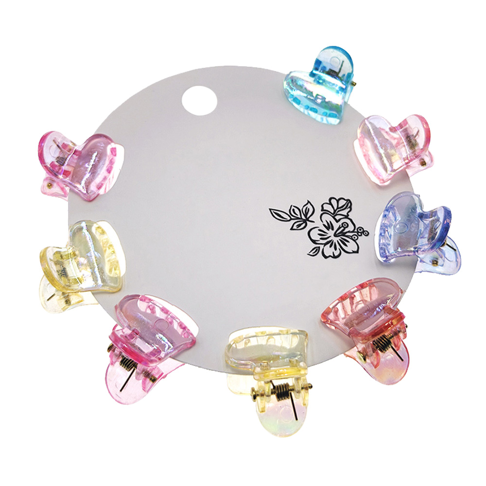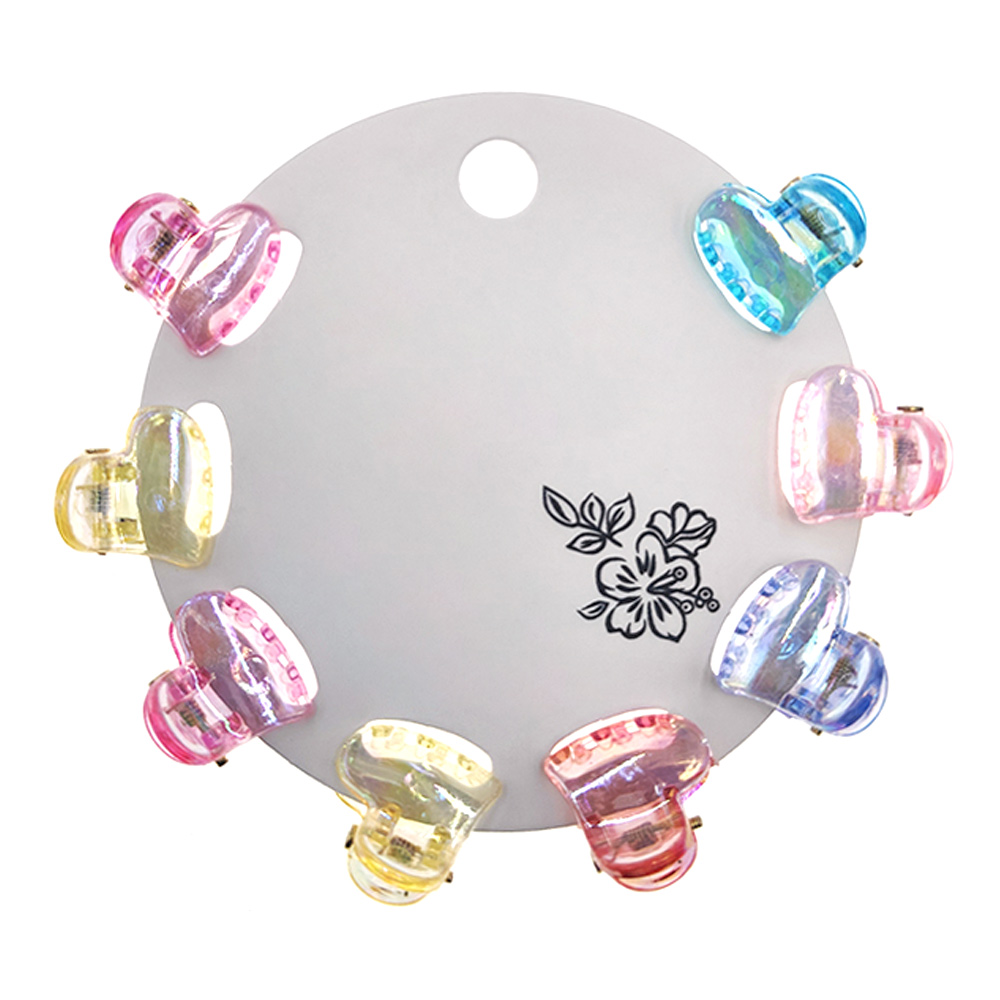Details • Size : 0.6" X 0.6" • Adorable mini heart-shaped hair claw clips in a set of 8, perfect for adding a cute and colorful accent to any hairstyle. Lightweight, easy to use, and ideal for both kids and adults to style and secure hair with charm.