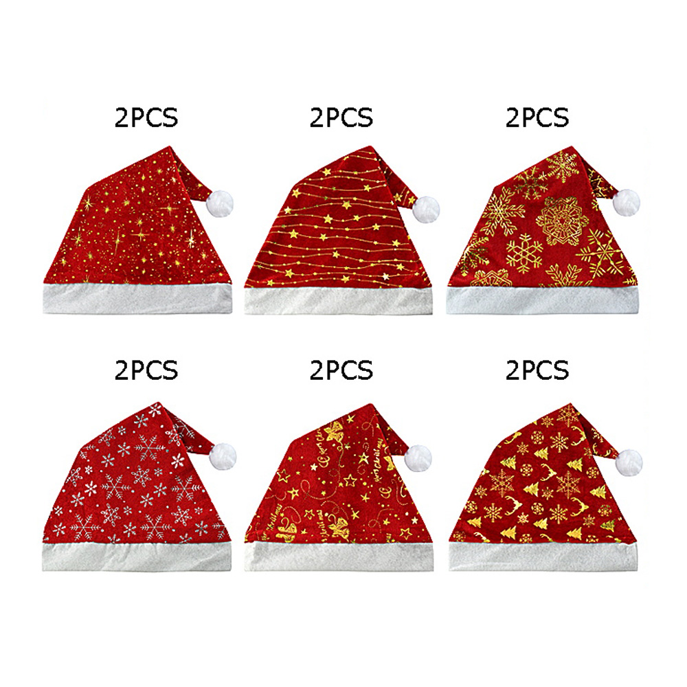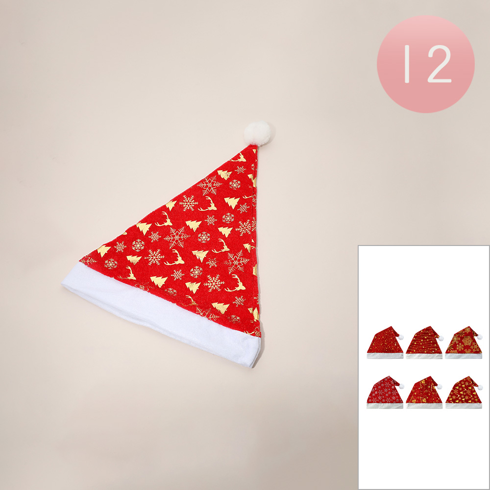 Details • Size : 11" X 15.5" • Celebrate in style with this 12-piece Christmas Santa hat set featuring six assorted festive designs. Perfect for Christmas parties, family gatherings, school events, or holiday photo shoots, these hats add instant seasonal cheer.