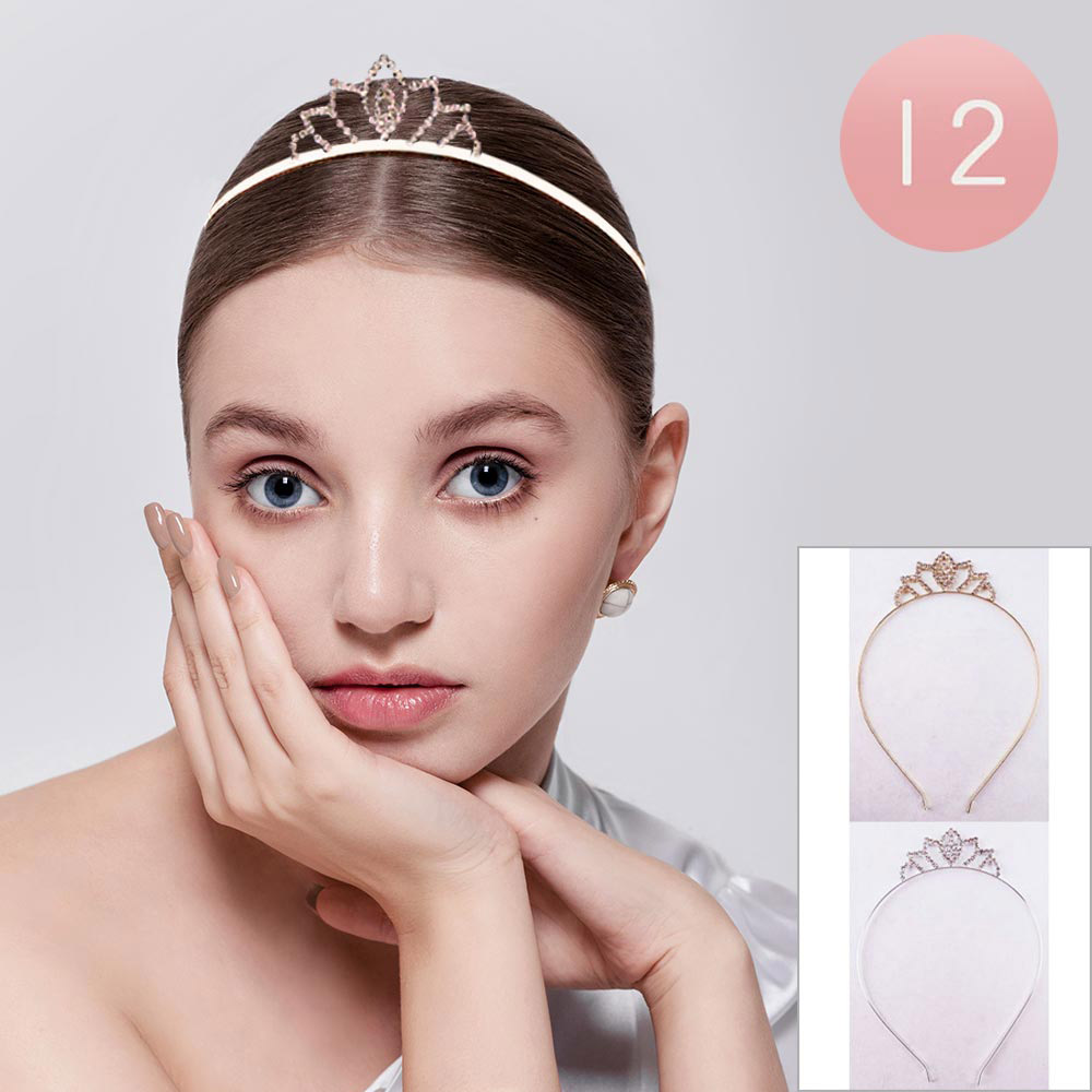 Details • Size : 1.2" H • Complete your fairytale look with this 12-piece princess tiara headband set, featuring a classic crown shape adorned with sparkling crystal accents. Ideal for parties, pageants, or dress-up fun, these headbands bring a regal and elegant touch to any occasion.