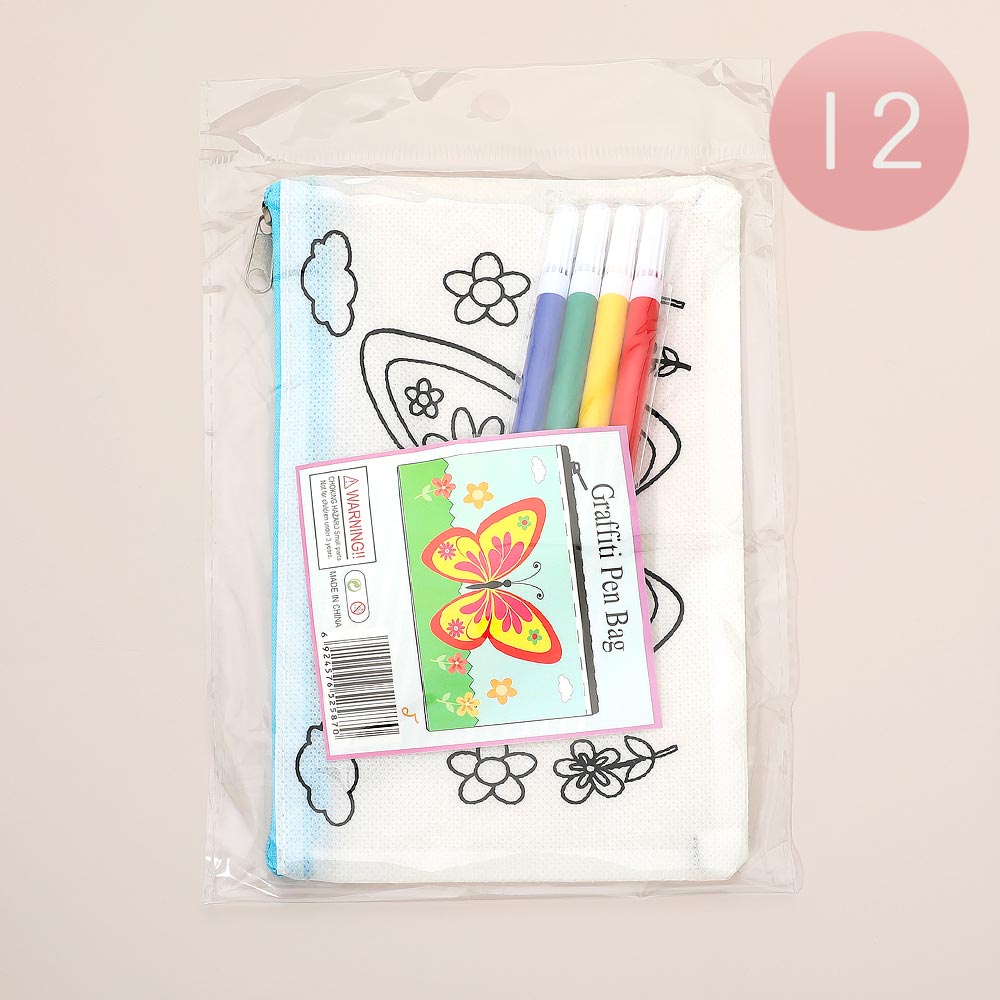 Details • Pouch Size : 4.7" X 8" • Pen Size : 3.5" L • Comes with 4 Colored Pens • Creative kids graffiti pen bag craft set featuring a printable zip pouch and included markers for easy decorating fun. Perfect for party favors, classroom projects, rainy-day activities, travel entertainment, and hands-on play that inspires imagination and creativity.