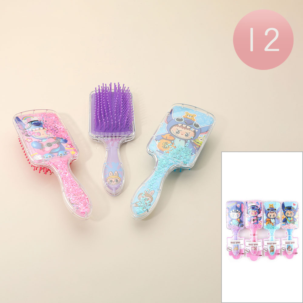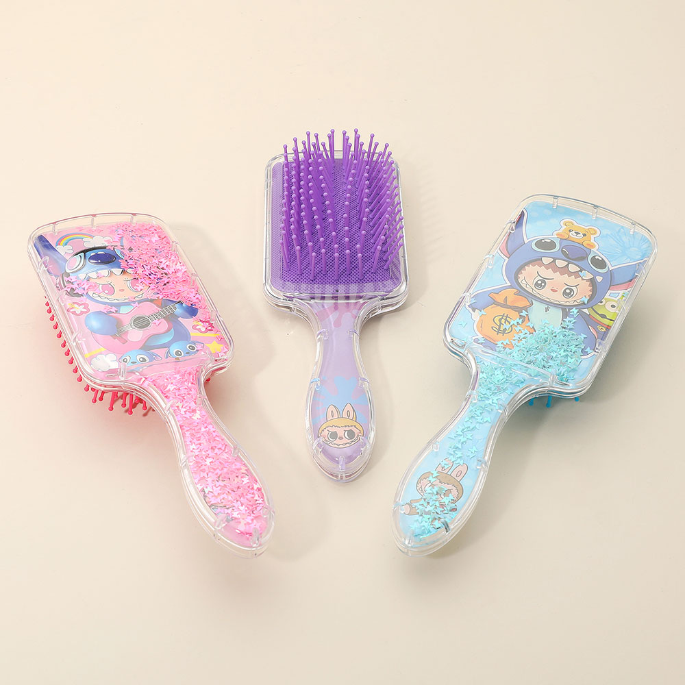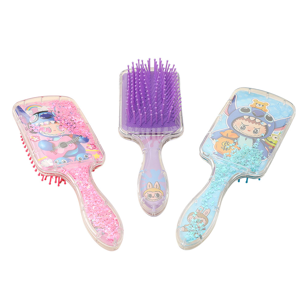 Details • Size : 2.6" X 7.75" • This adorable paddle hair brush features playful character art and floating glitter accents that make styling fun. Its wide bristle layout helps glide through hair smoothly while adding a cheerful touch to any routine. A delightful accessory for daily grooming and gifting.