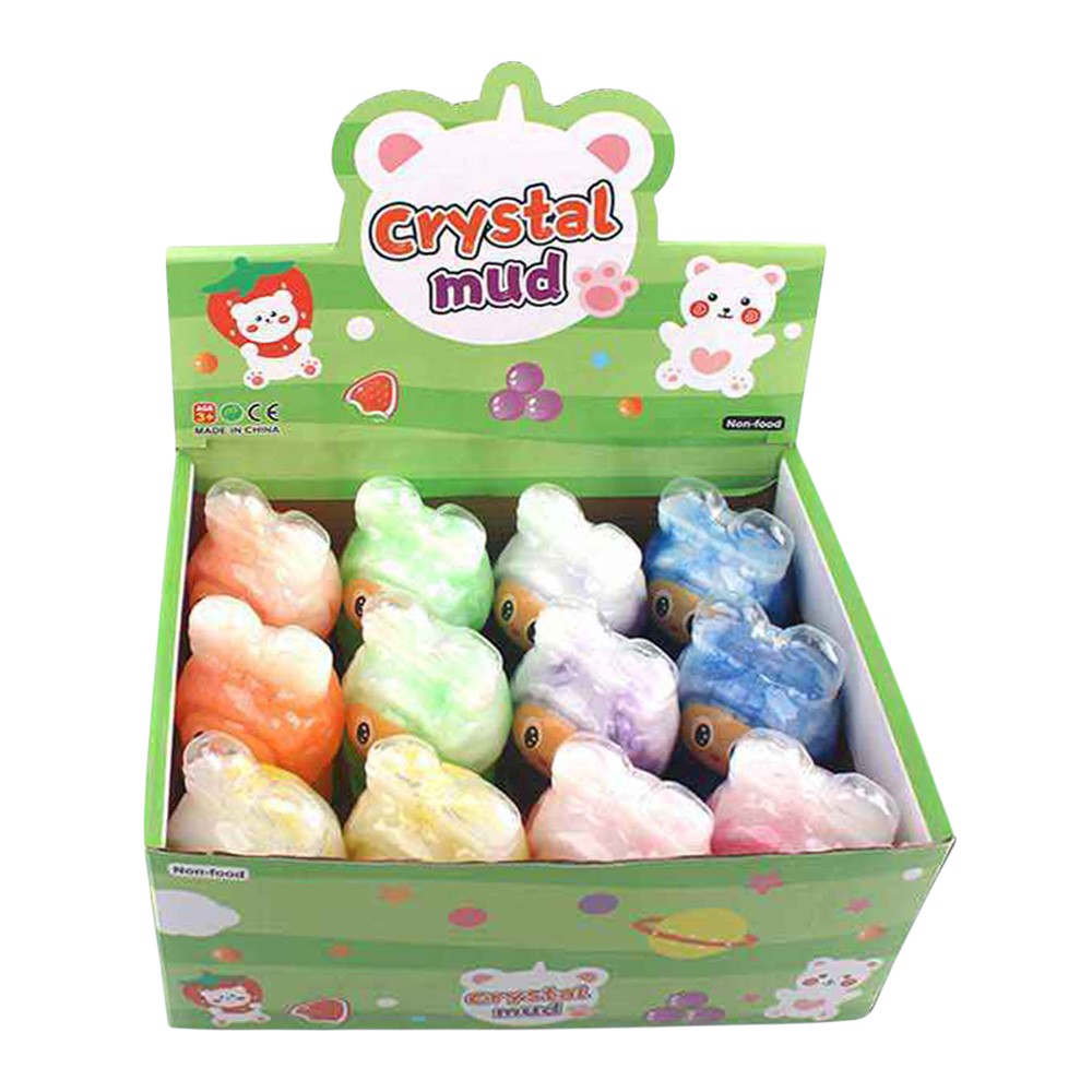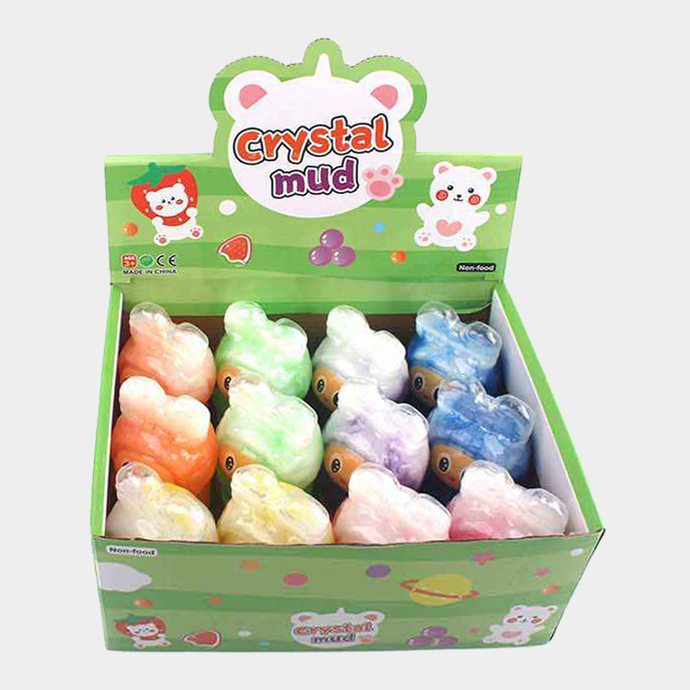Details • Size : 3.8" L • Crystal Mud slime in cute monster bunny-shaped containers with assorted colors. Soft, stretchy, and fun to play with, this slime is perfect for stress relief, sensory play, or party favors. Kids and teens will enjoy hours of creative fun with this colorful slime pack, making it a great gift or activity choice.