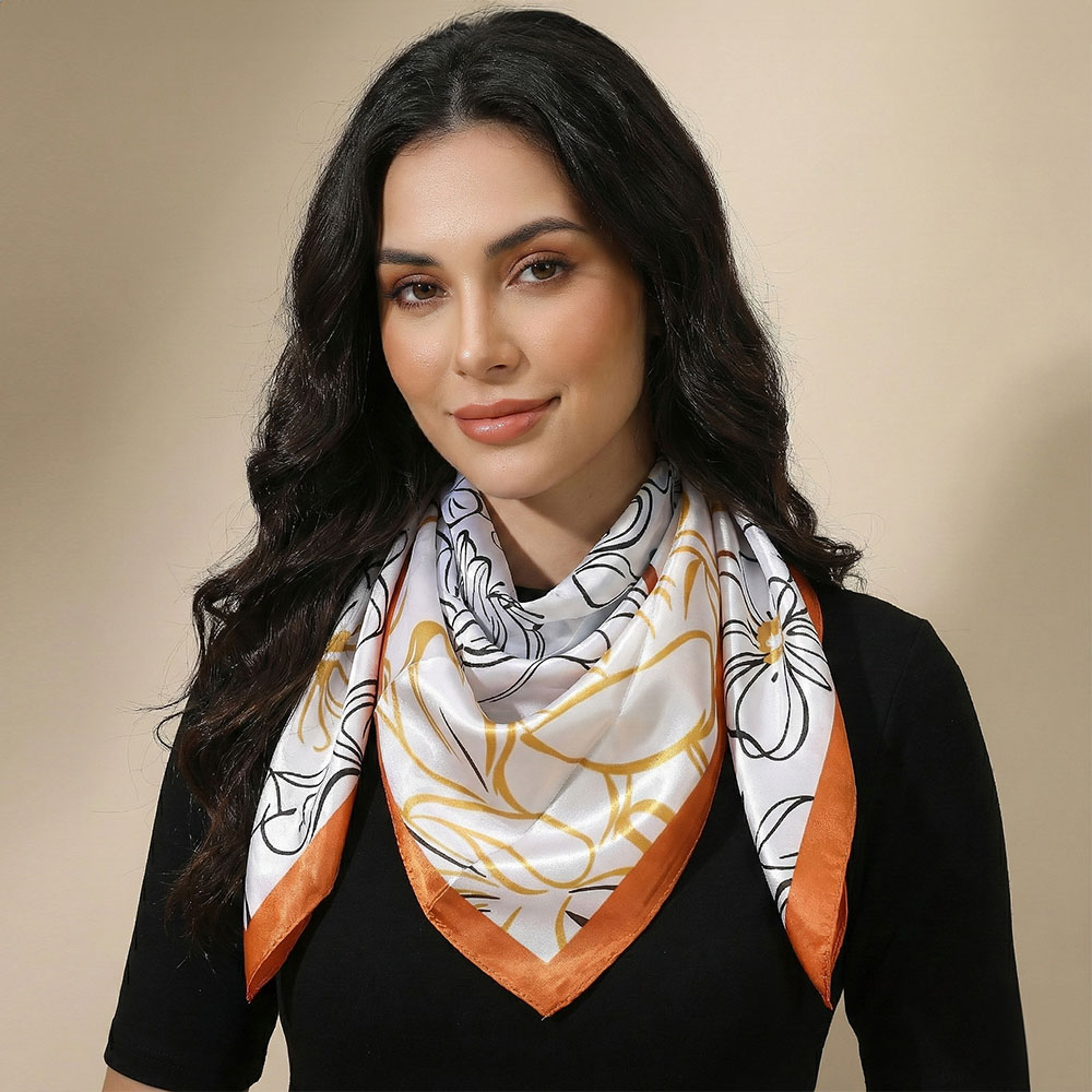 Details • Size : 36" X 36" • Material : 100% Polyester • A stylish square scarf featuring eye-catching floral patterned designs that elevate everyday looks. Perfect for draping, tying, or gifting, it brings an easy touch of elegance and versatility to casual outfits or polished ensembles.