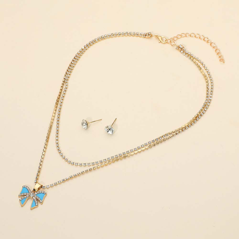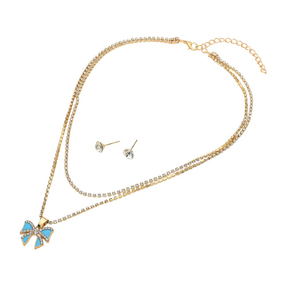Details • Necklace Size : 16" + 2.5" L • Decor Size : 2.5" L • Pendant Size : 0.7" X 0.9" • Earrings Size : 0.3" L • Add playful elegance to your look with this bow pendant tennis necklace and stud earring set featuring a sparkling continuous chain design and charming bow centerpiece. Perfect for coordinated wear or mixing with other favorites, it brings refined shine to everyday outfits and special occasions, making it an ideal gift-ready accessory set.